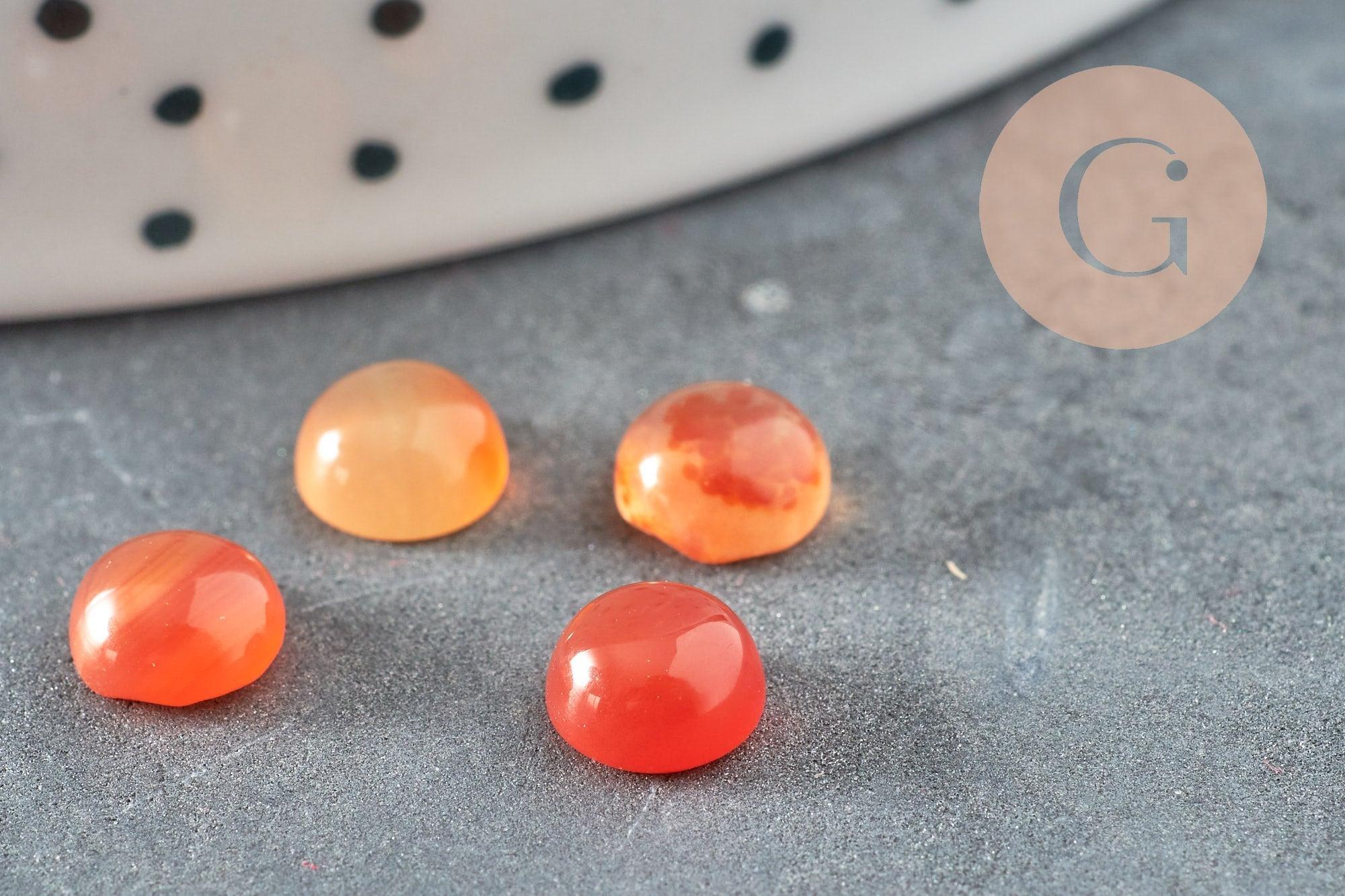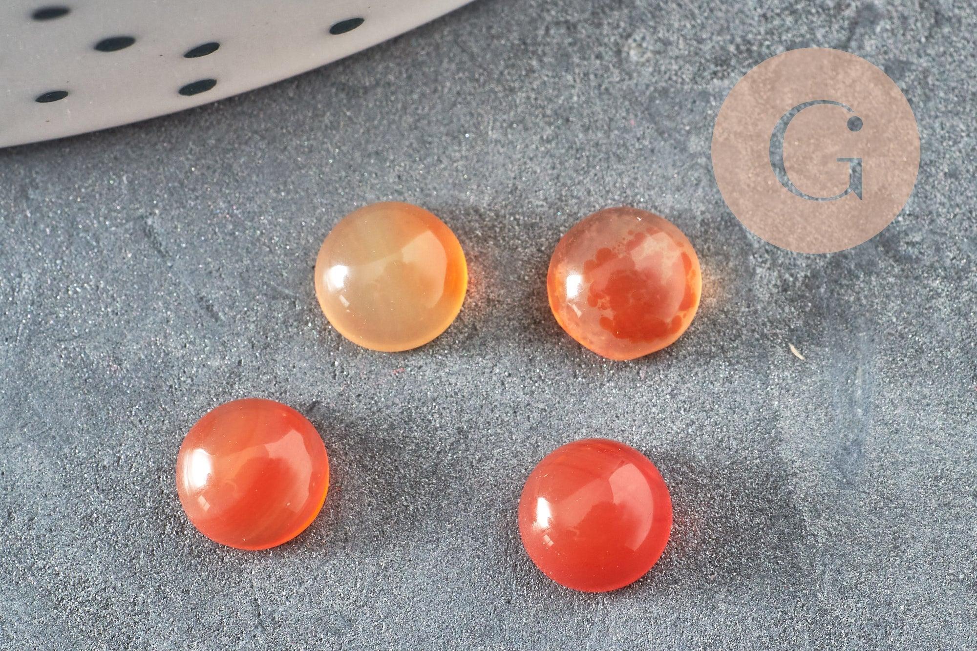 Déjate seducir por este cabujón de ágata natural y pulida, teñido de naranja, de 6 mm de diámetro.