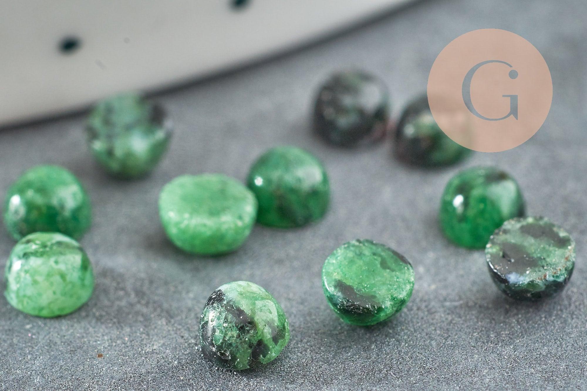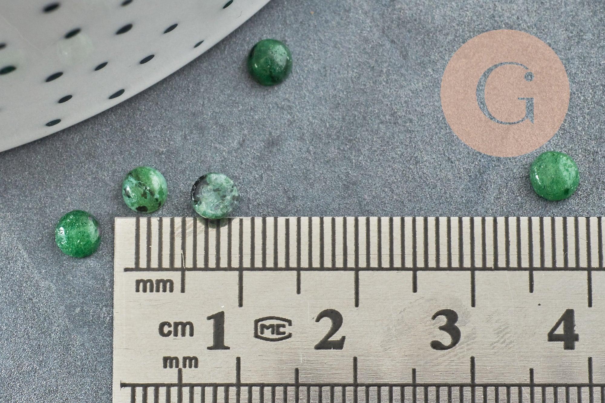 Déjate seducir por este cabujón redondo de aventurina natural y pulida, sin tratar, de color verde.
