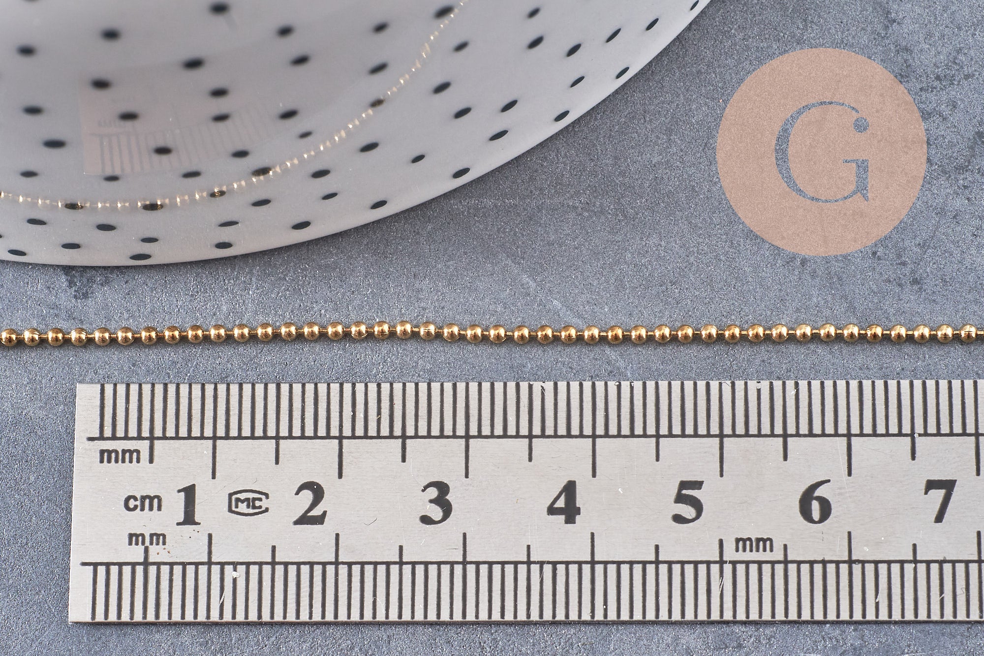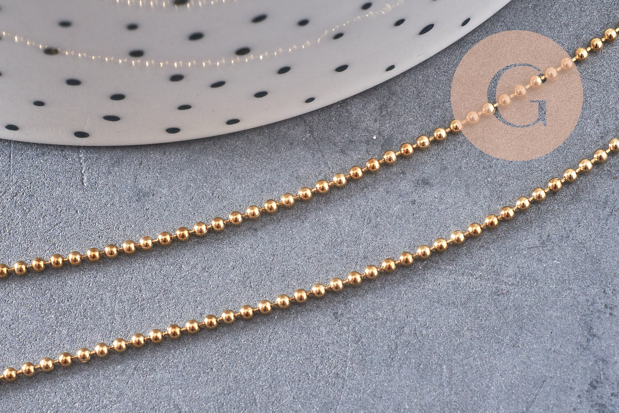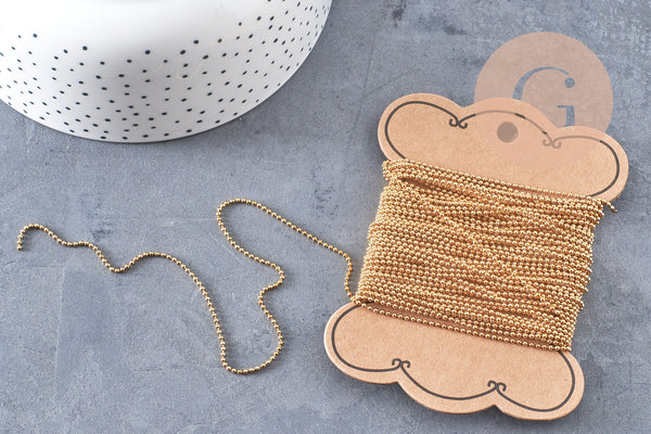 La cadena tiene bolas de 1,4 mm de diámetro, creando un efecto delicado y refinado, perfecto para muchas creaciones de joyería.