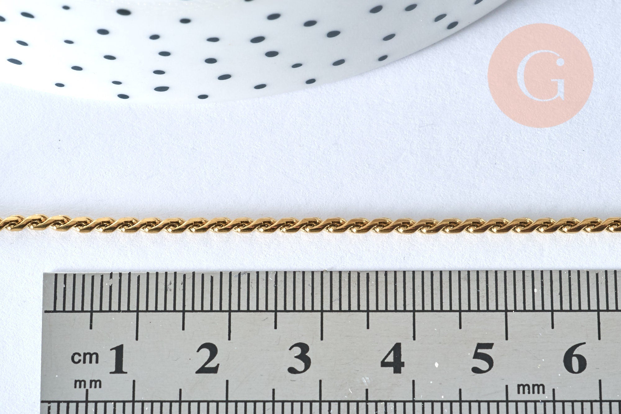 Pulsera de acero inoxidable 304 chapada en oro de 14 quilates, cadena trenzada de 1,5-2 mm/19,5 cm, x1 (G5358)