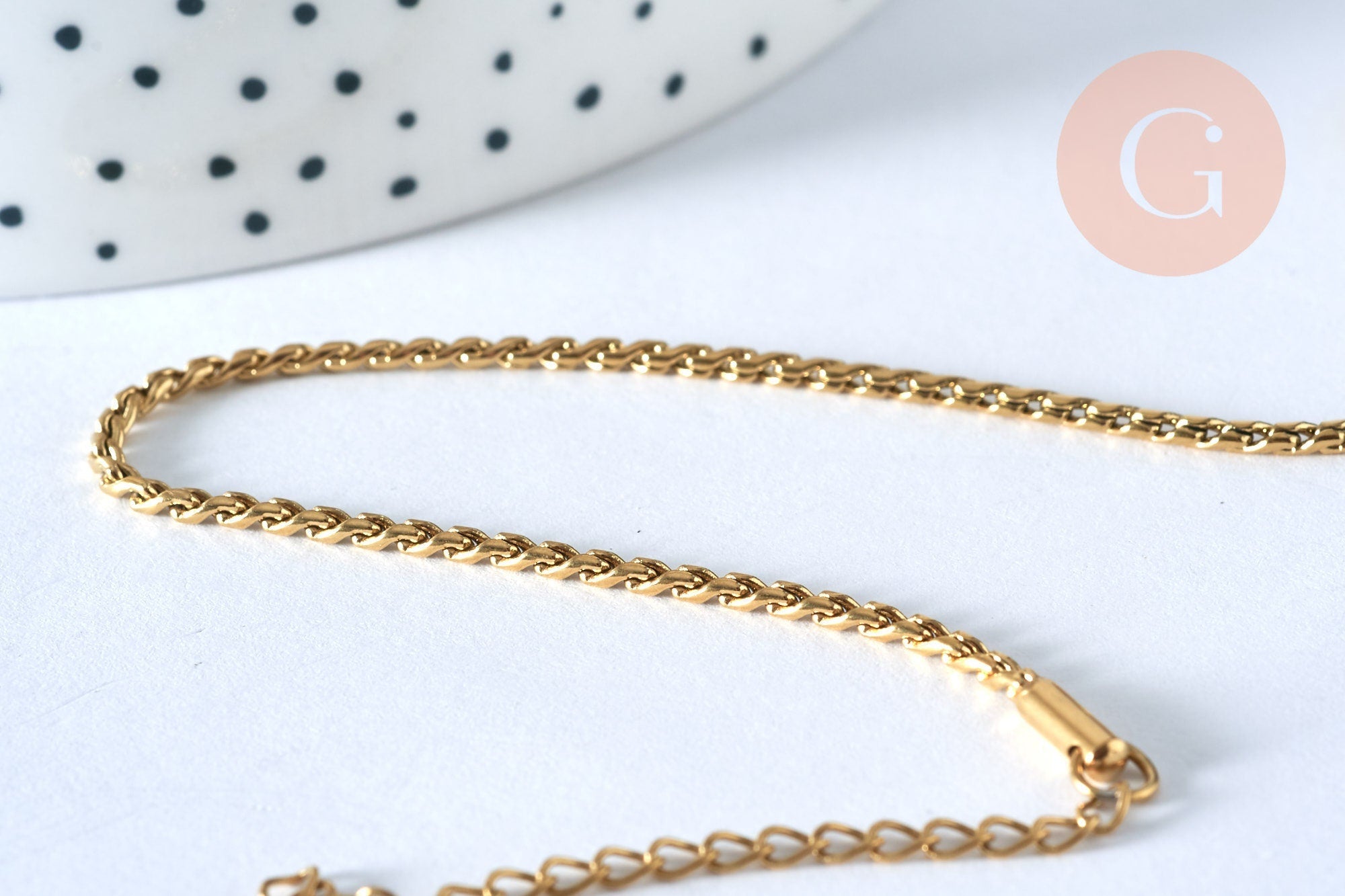 Para realizar rápidamente tus joyas, Gingerily te ofrece una fina pulsera de cadena de acero bañada en oro de 14 quilates.