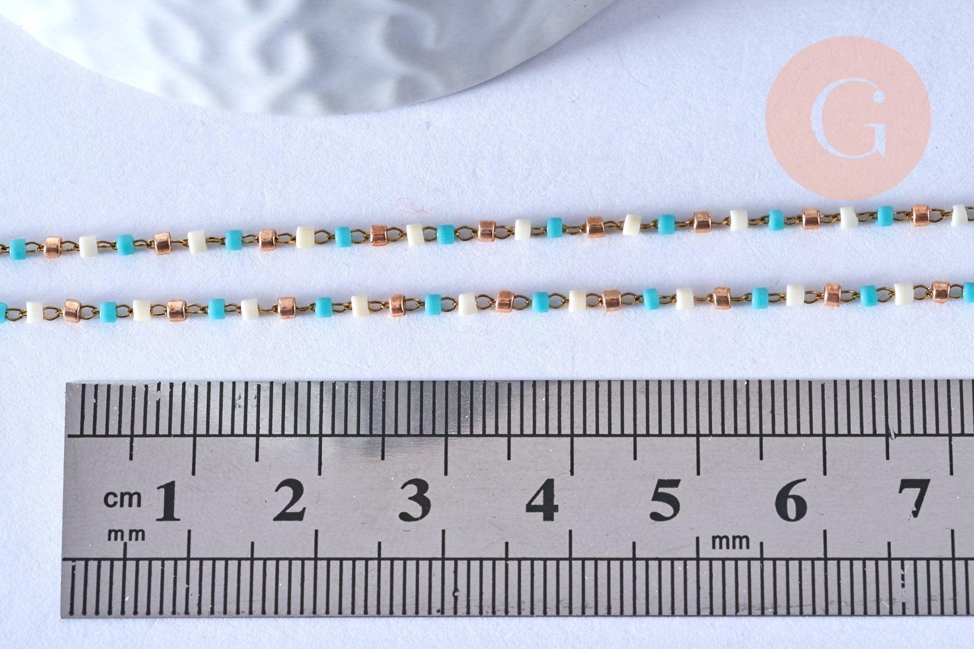 Cadena completa de cuentas de acero bañadas en oro, cuentas de semillas de turquesa, creación de collar de acero inoxidable bañado en oro hecho a mano, 40,7 cm, unidad