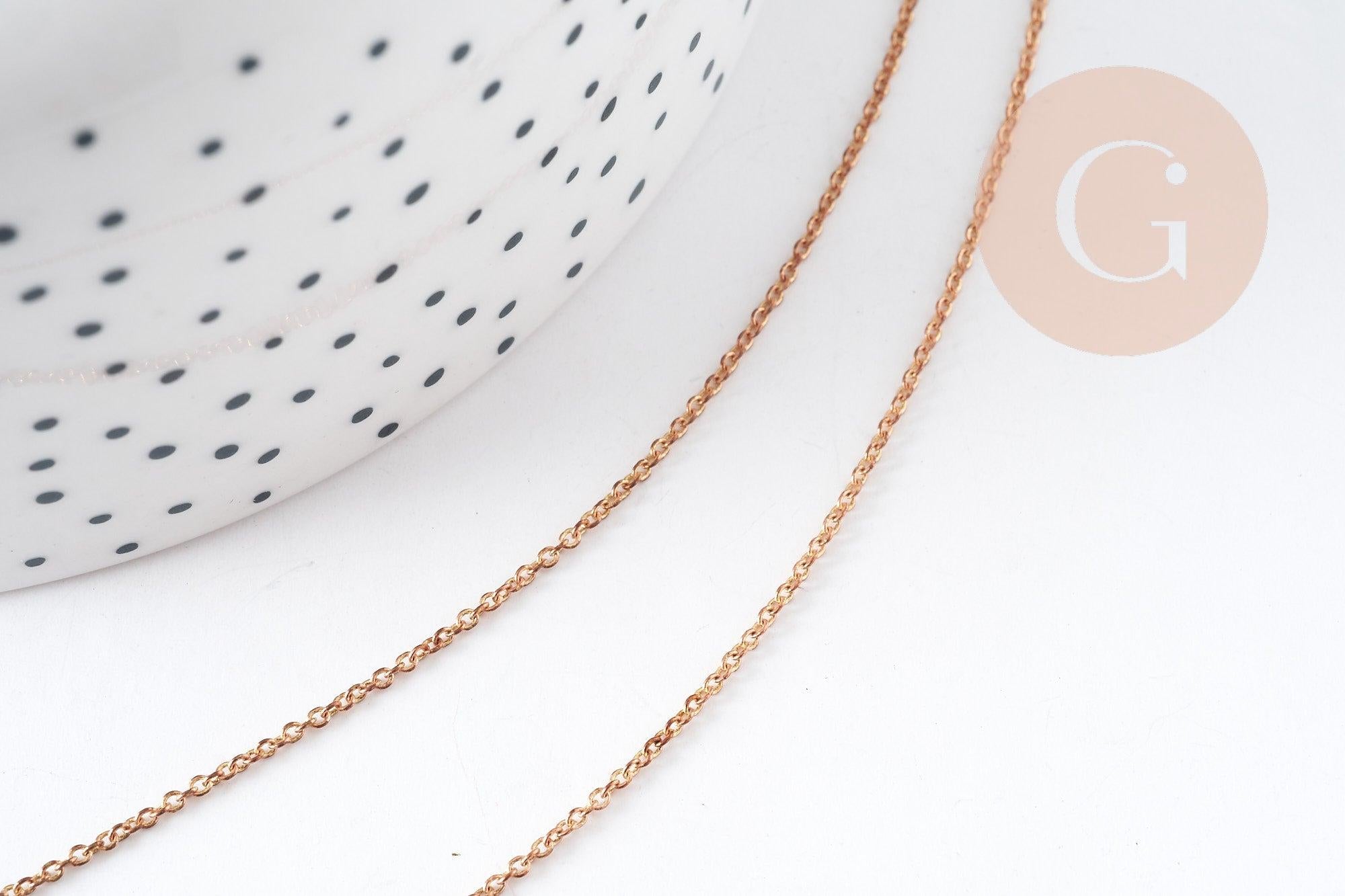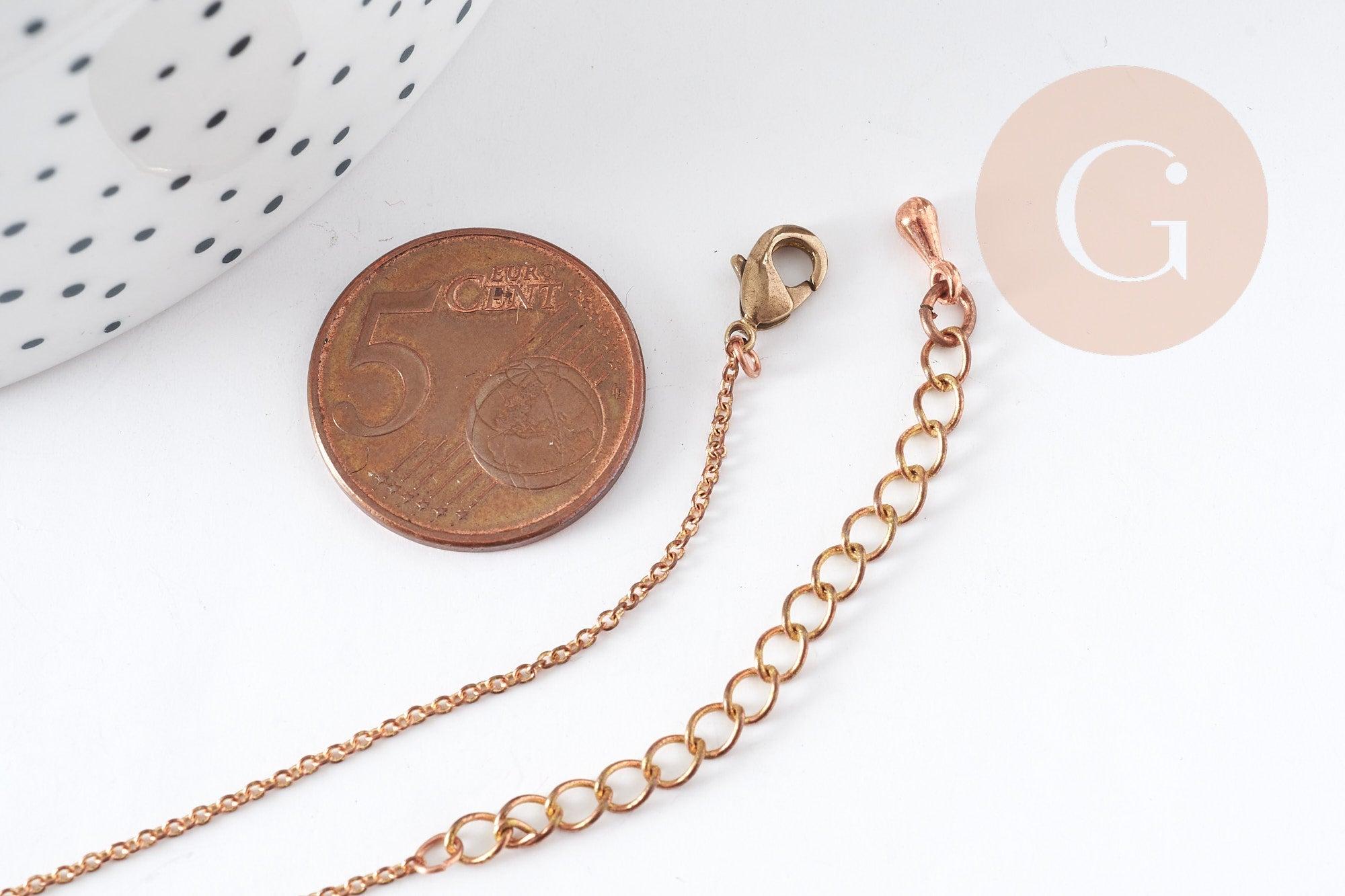 Añade un toque de autenticidad y personalidad a tus creaciones con esta cadena tipo cable de cobre crudo con cierre de mosquetón. Fina pero resistente, es perfecta para crear collares DIY o con un estilo rústico, vintage o artesanal .