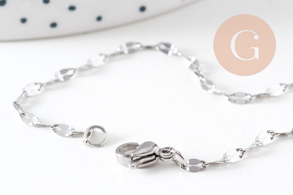 Cadena completa ovalada de platino, cadena de acero, cadena sin níquel, cadena de collar, creación de joyas, cadena de plata, 45cm