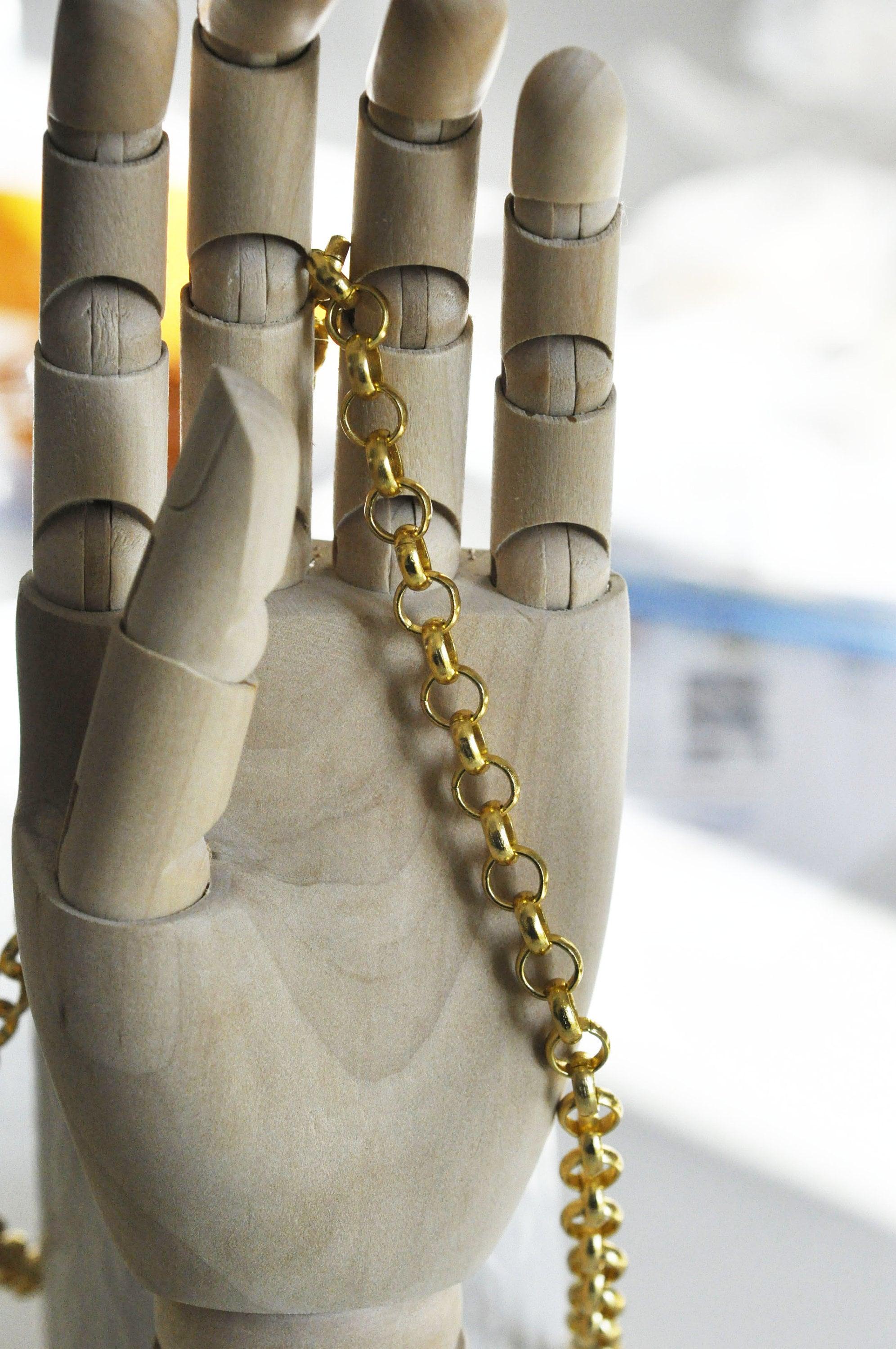 Para realizar rápidamente tus joyas, Gingerily te ofrece esta cadena rollo de aluminio dorado.