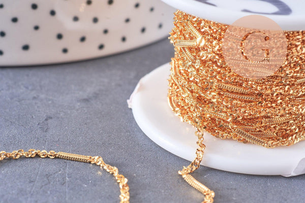 Un hermoso dorado de 2,5 micras de espesor. Una cadena elegante y original, que alterna malla serpentina y malla forzada/retorcida.