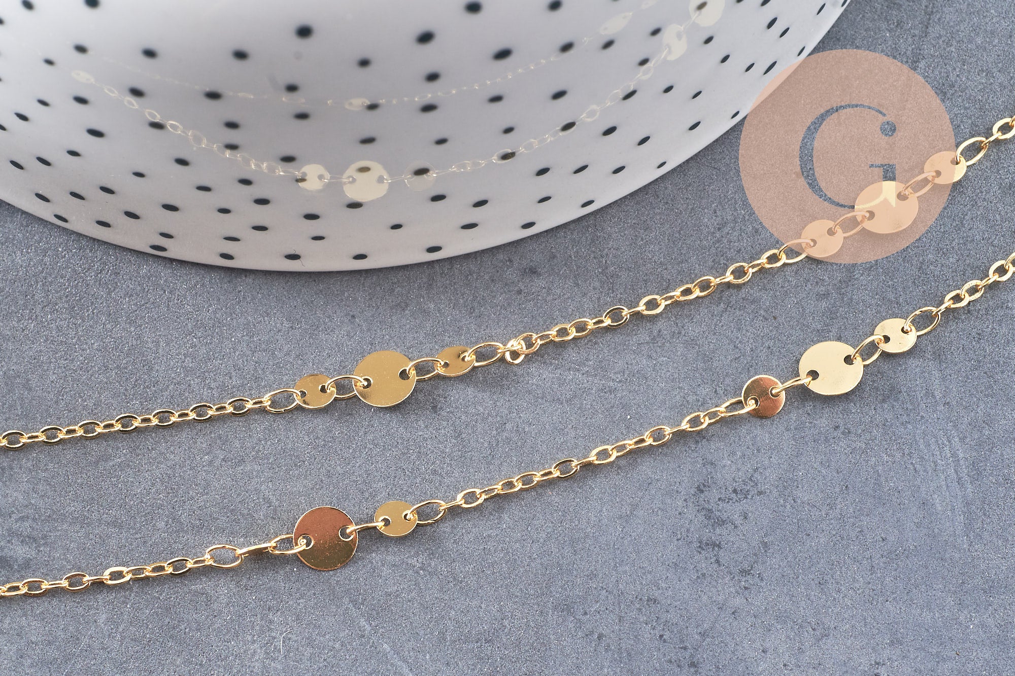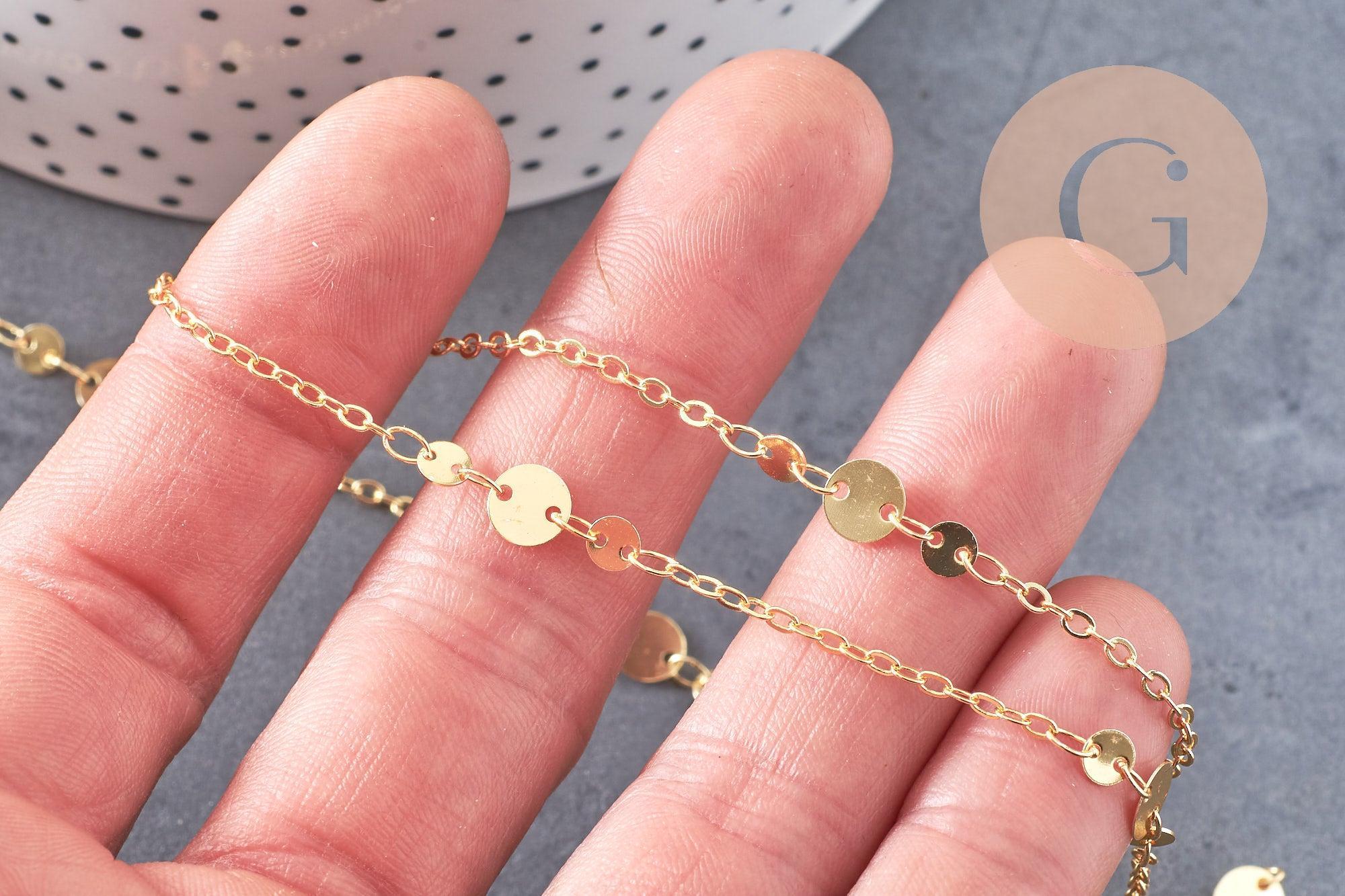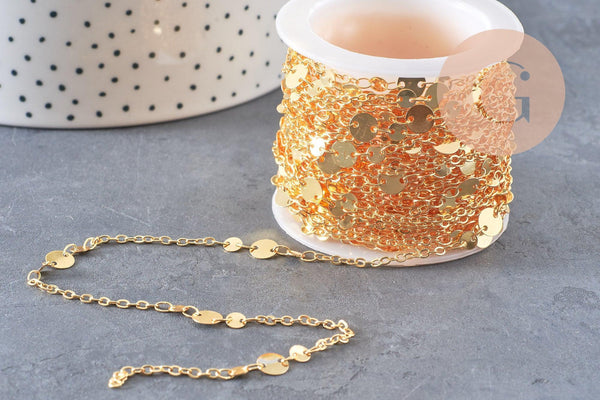 Cadena de oro de 18 quilates con discos, cadena de oro de fantasía, 2x1,5 mm x 1 metro (G5447)