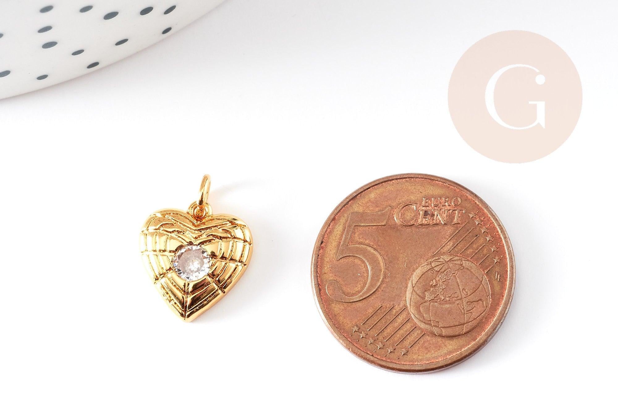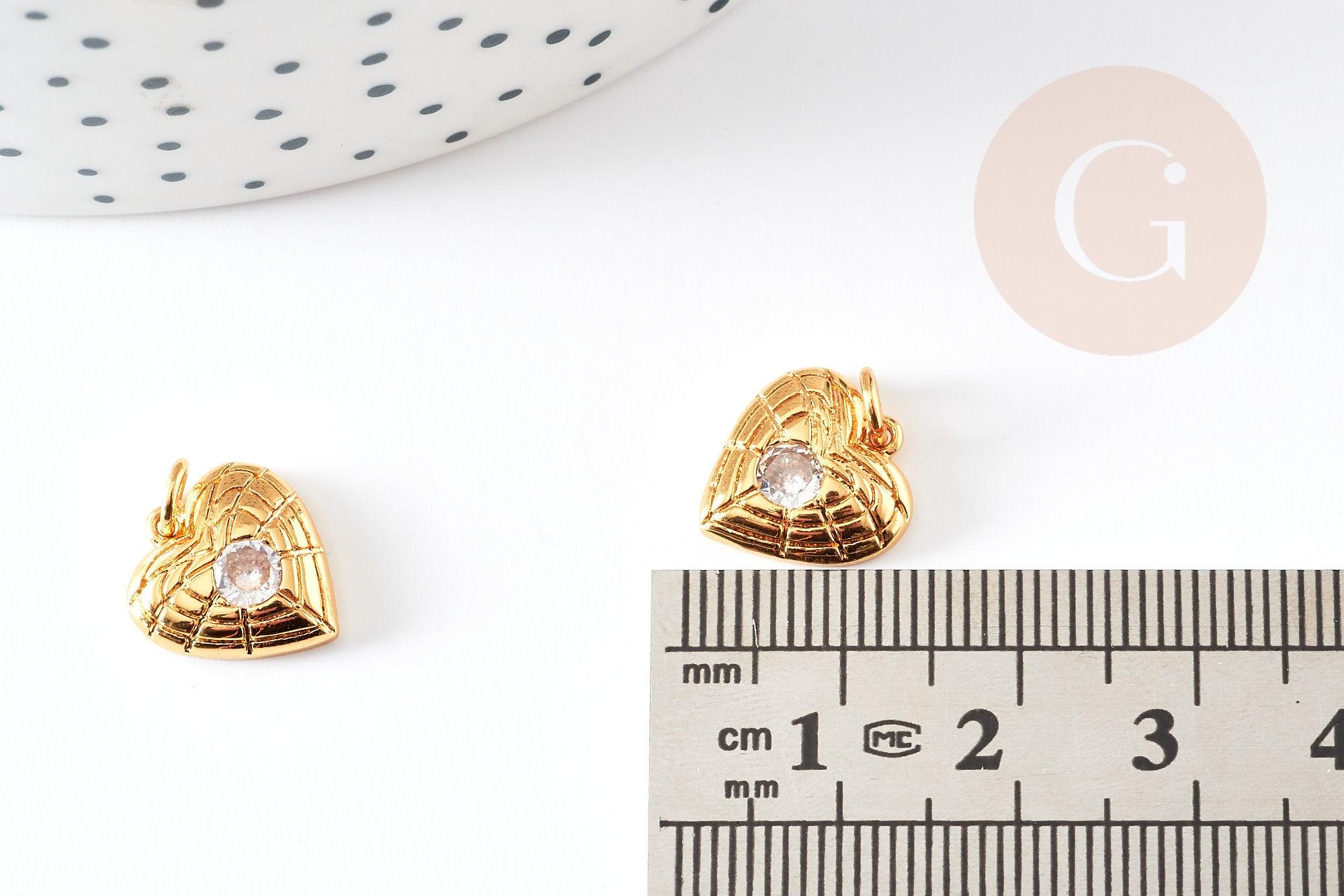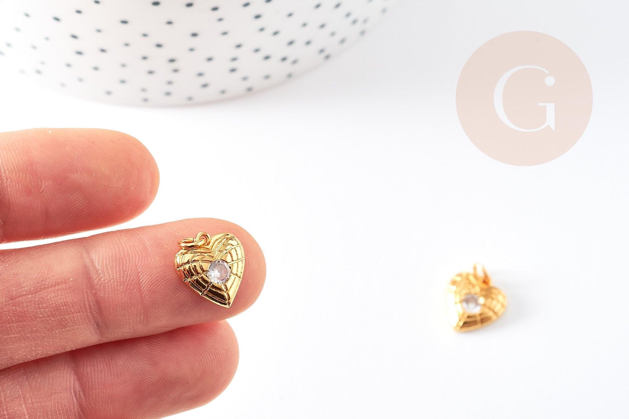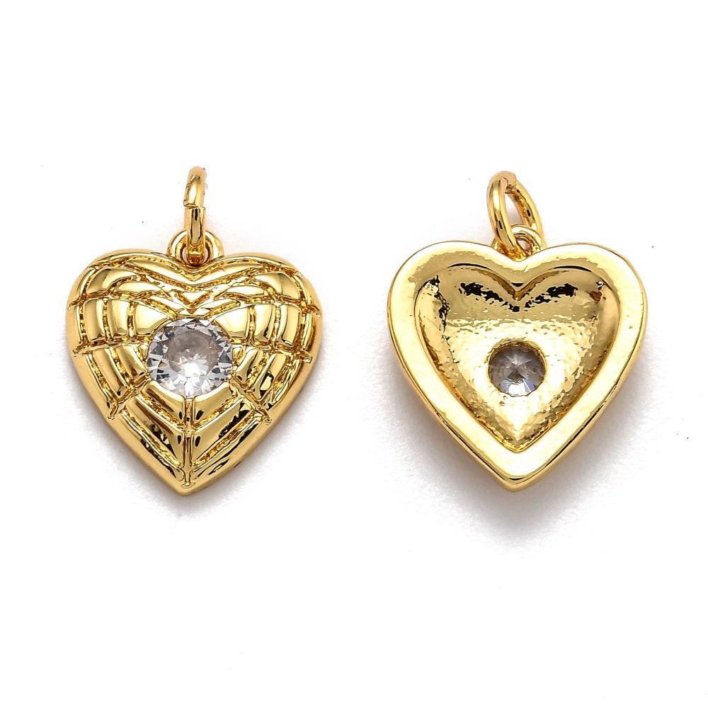 Colgante de medalla de corazón de latón bañado en oro de 18 quilates y cristal de circonio, colgante de amor de latón para la creación de joyas, 13 mm, x1 G6078