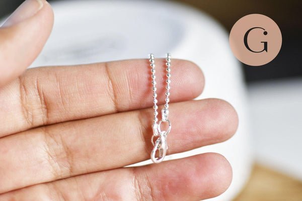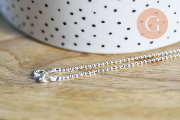 Cadena fina de latón bañado en plata con bolas facetadas de 1,2 mm/45 cm, cadena de collar de latón bañado en plata, cadena completa con cierre x1 (G6201)