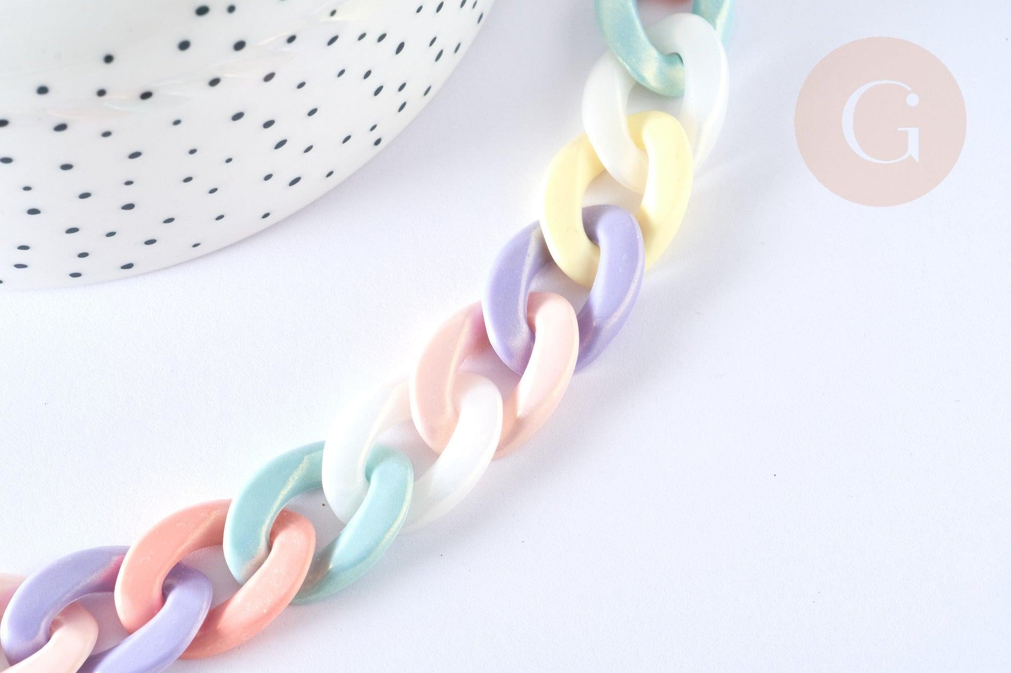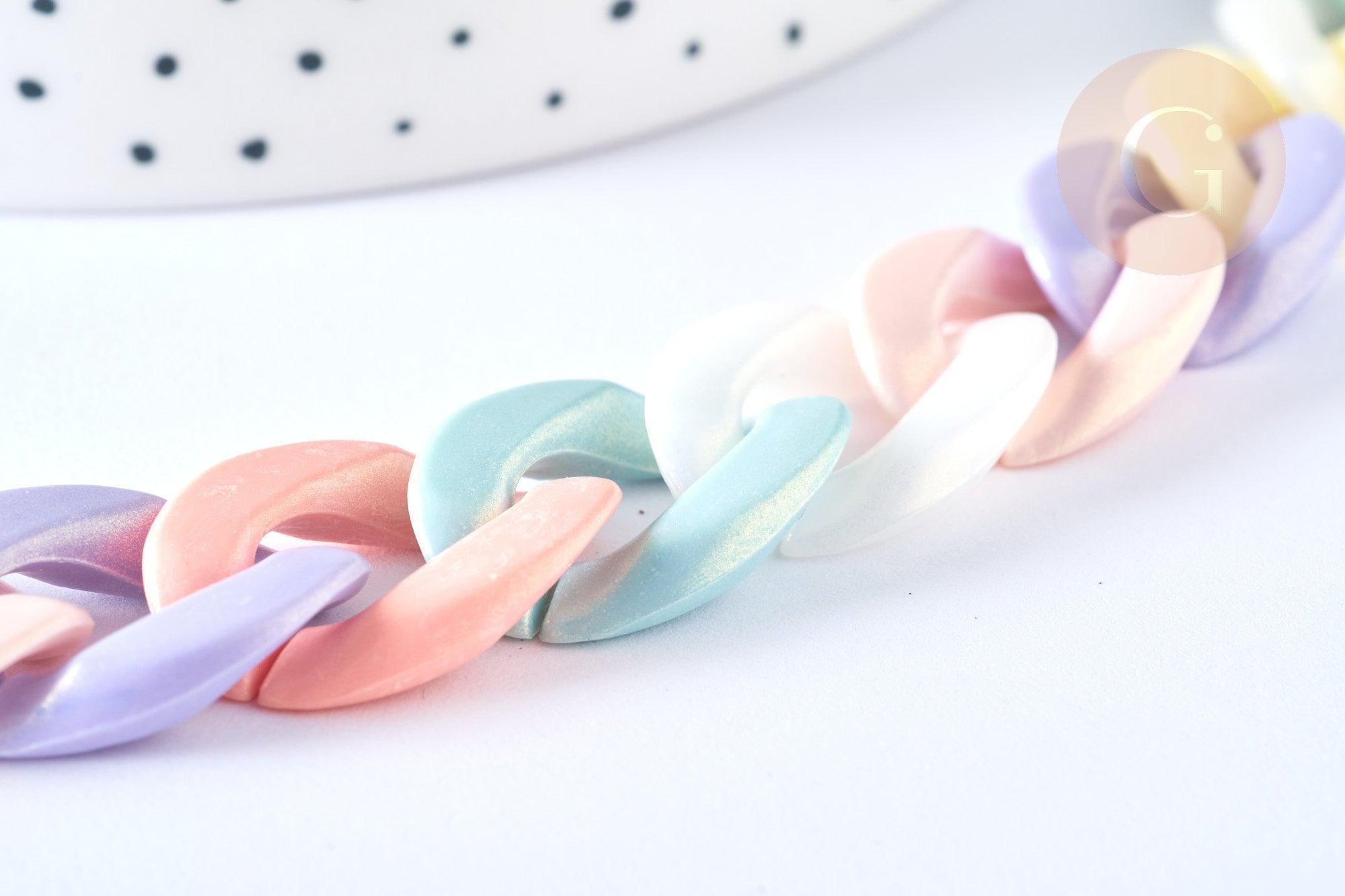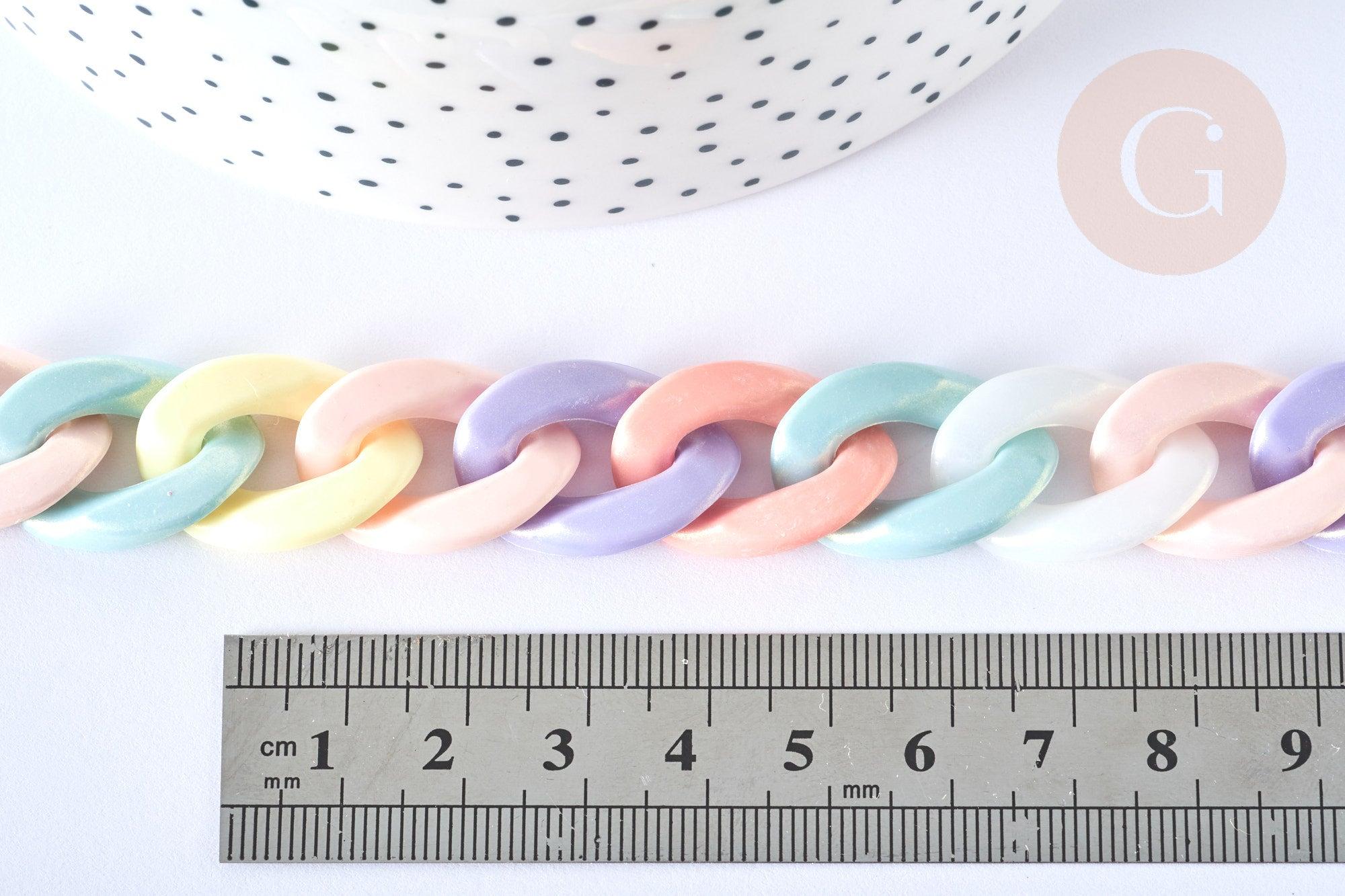 Cadena de eslabones acrílicos color pastel de 24 mm, 1 metro (G7064)