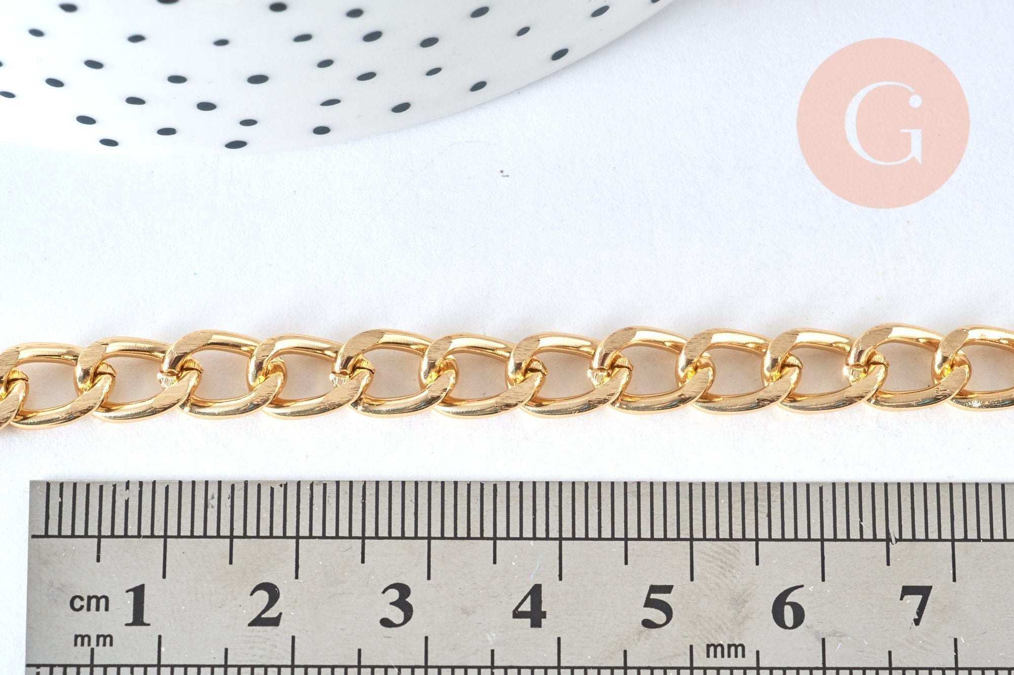 Cadena de eslabones grande EP en acero bañado en oro de 16 k de 5,5 mm, x1 metro (G6853)