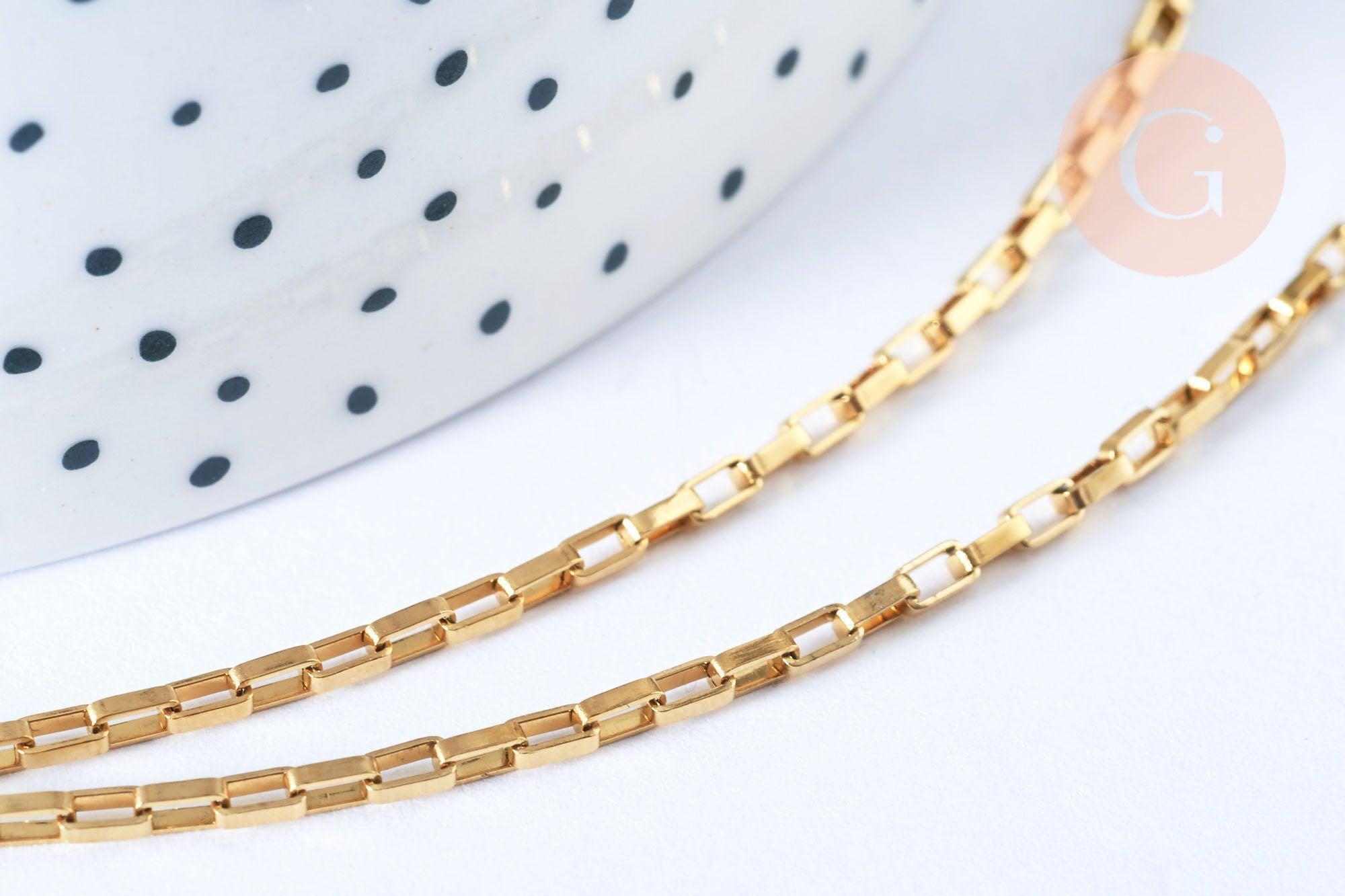 Cadena de malla rectangular de acero inoxidable IP 304 oro de 18k de 3x2 mm, x1 metro (G5345)
