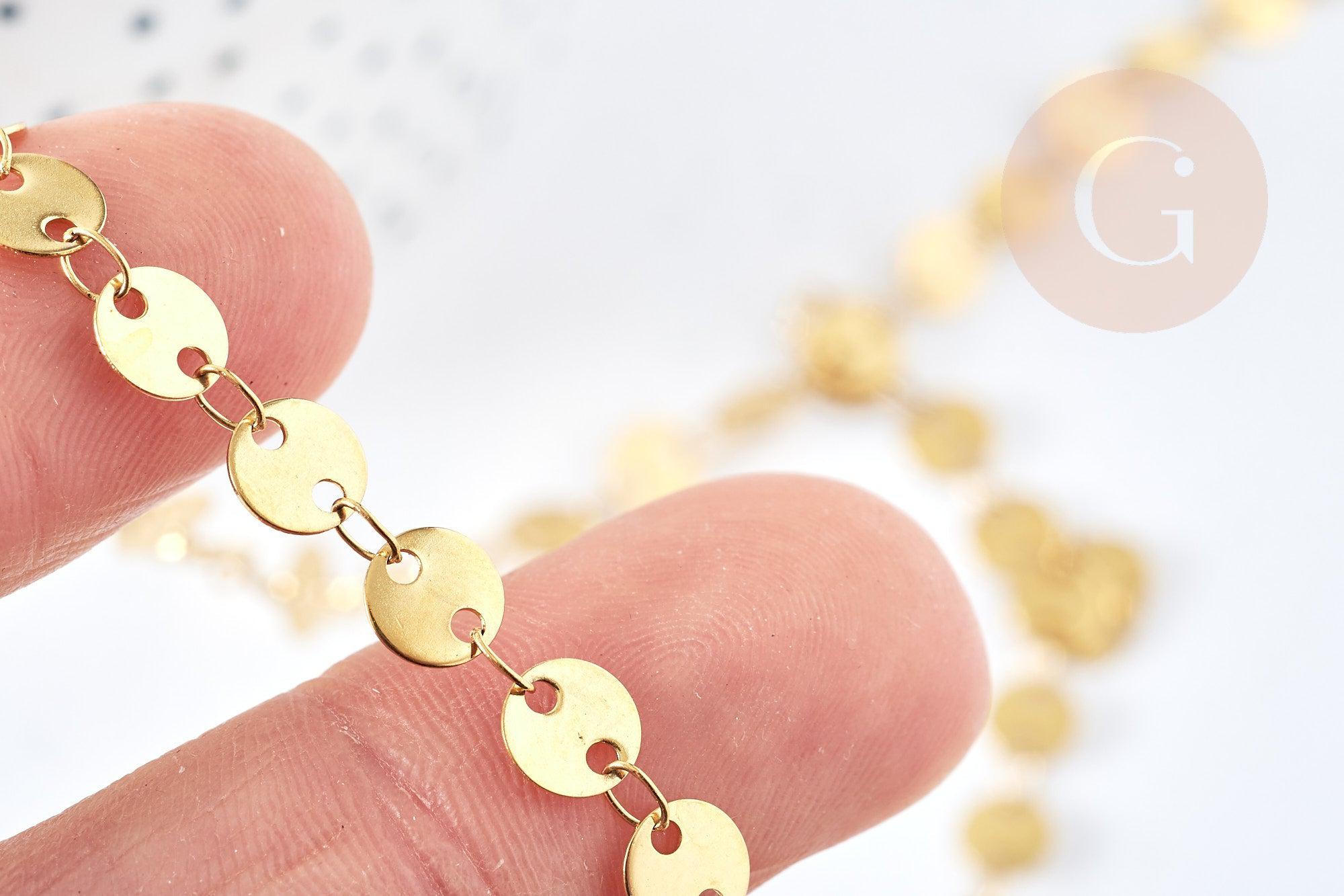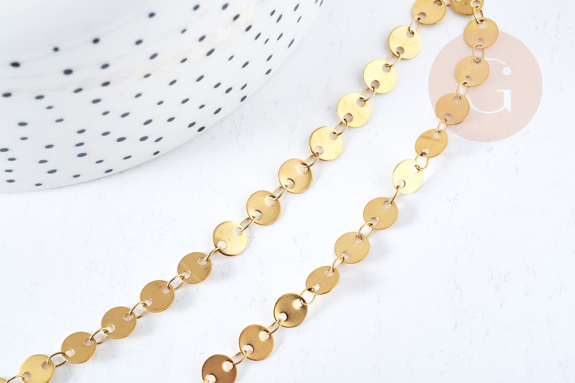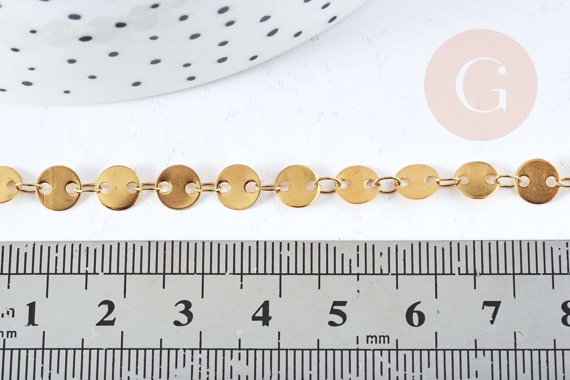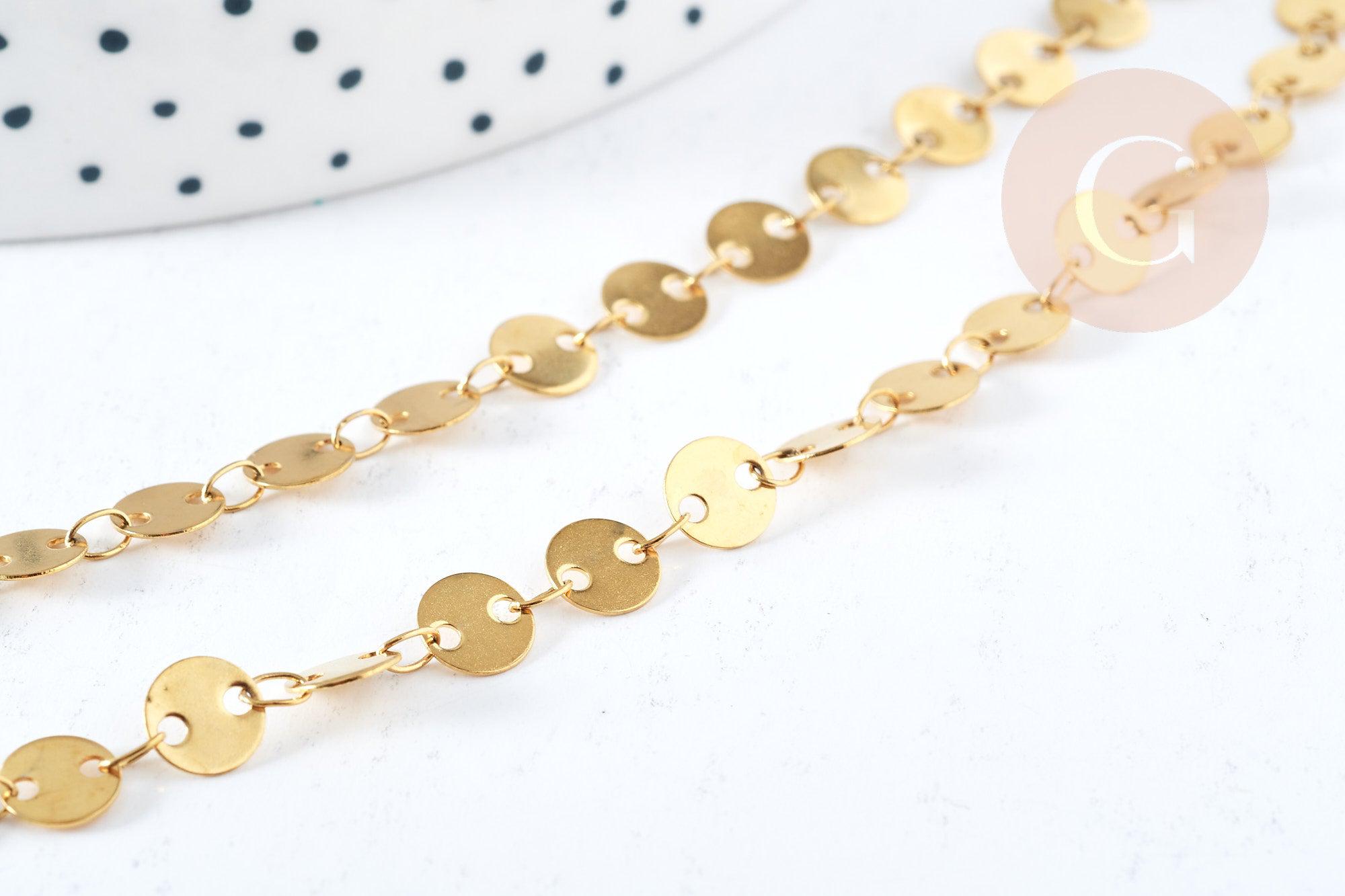 Chaine Pastille avec fermoir acier 304 inoxydable doré 6mm-45cm,chaine complète avec fermoir en acier, x1 G8779