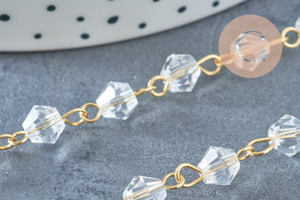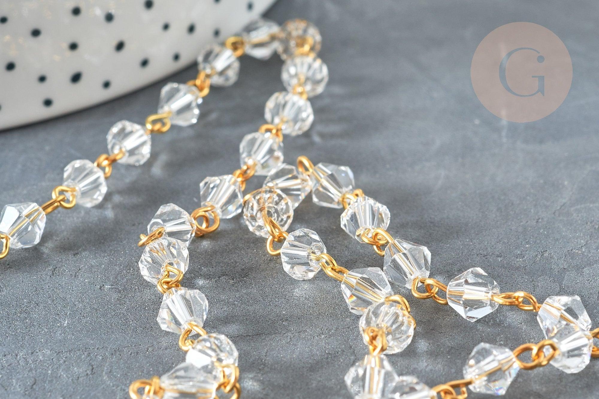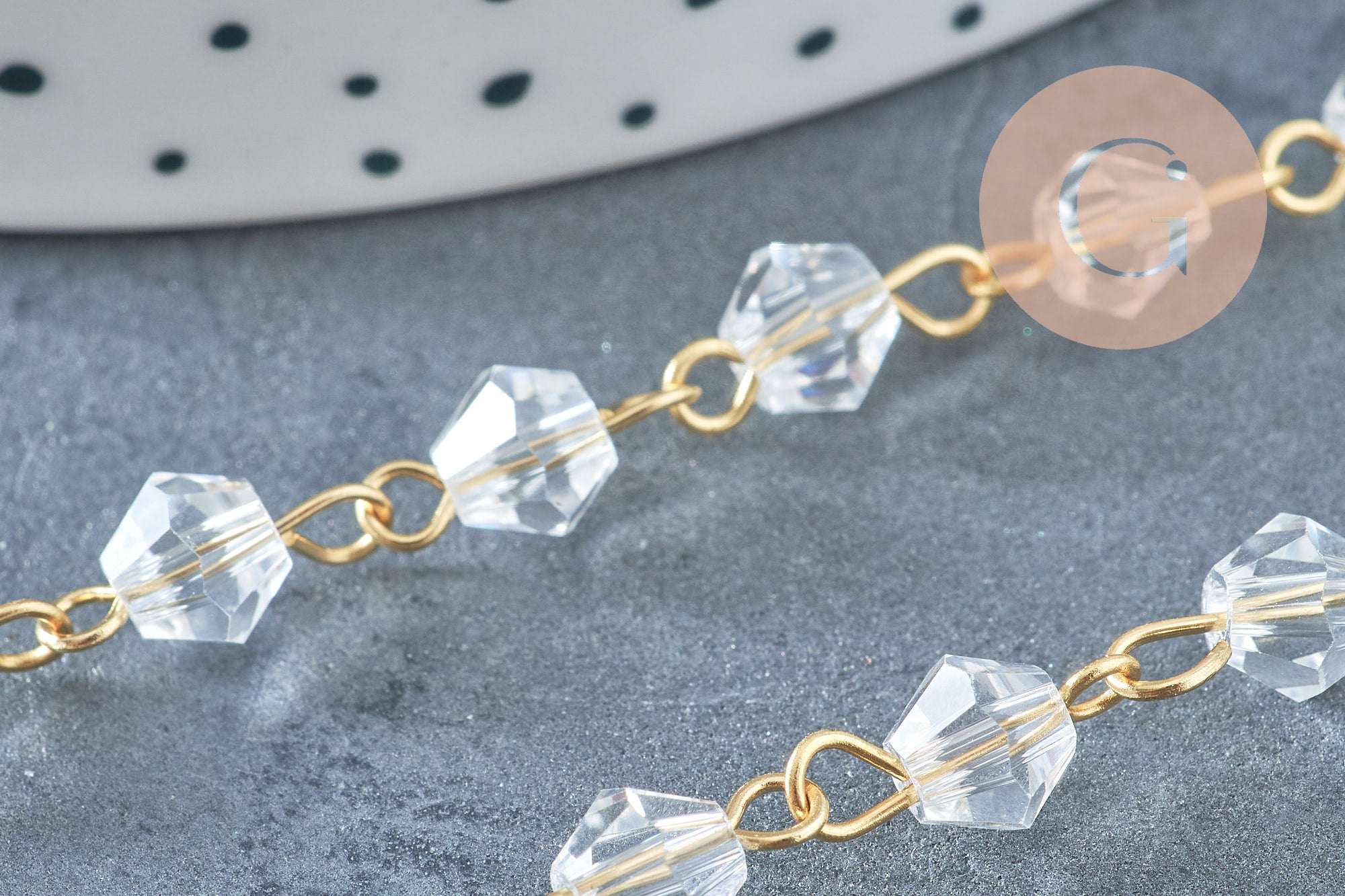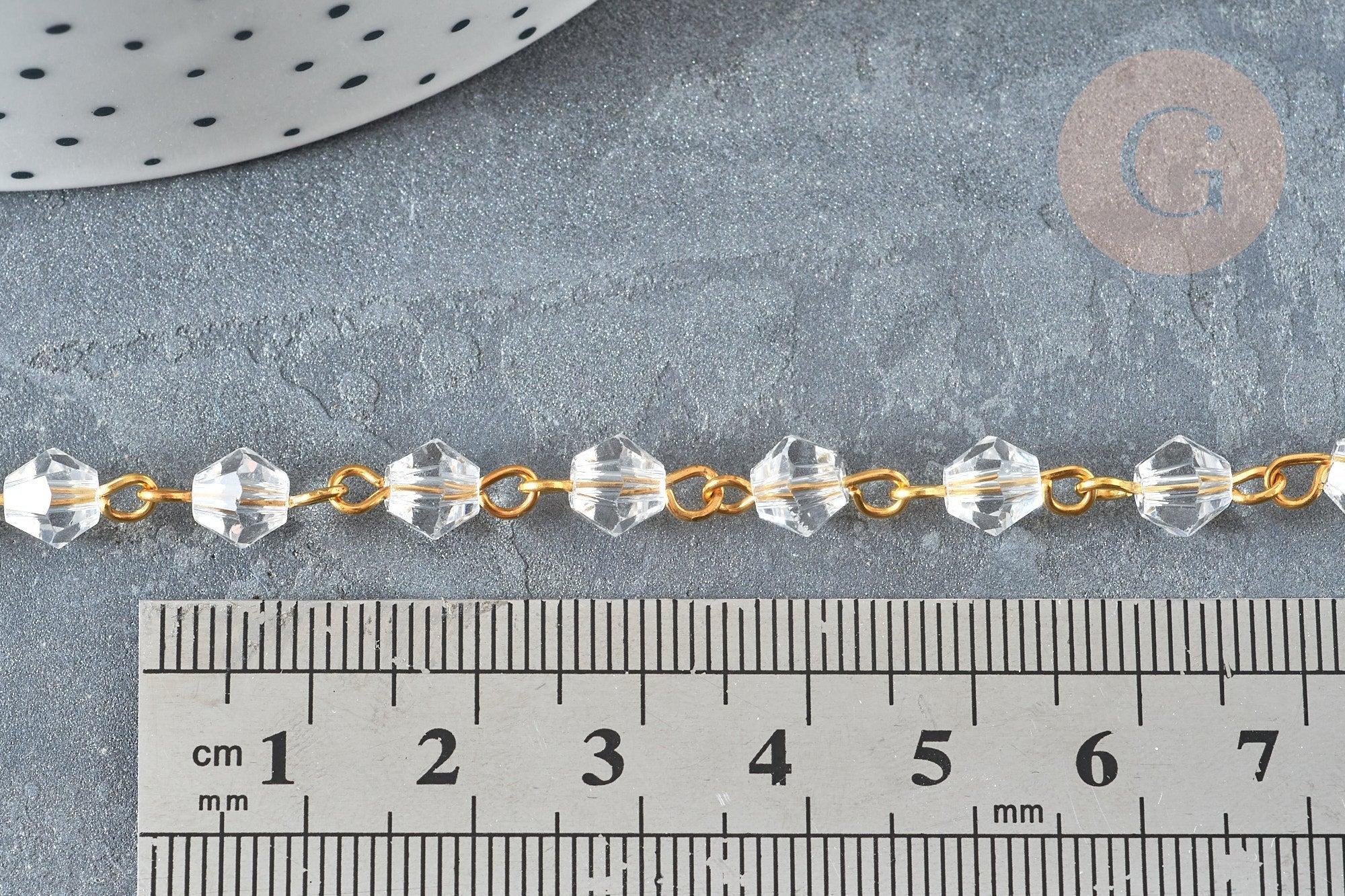 Dale un toque de modernidad y elegancia a tus creaciones con esta cadena de hierro bañada en oro, hecha con cuentas acrílicas geométricas facetadas en blanco o negro. Este material ligero y duradero es perfecto para crear bisutería DIY y se adapta a muchas creaciones, ya sean modernas o minimalistas.