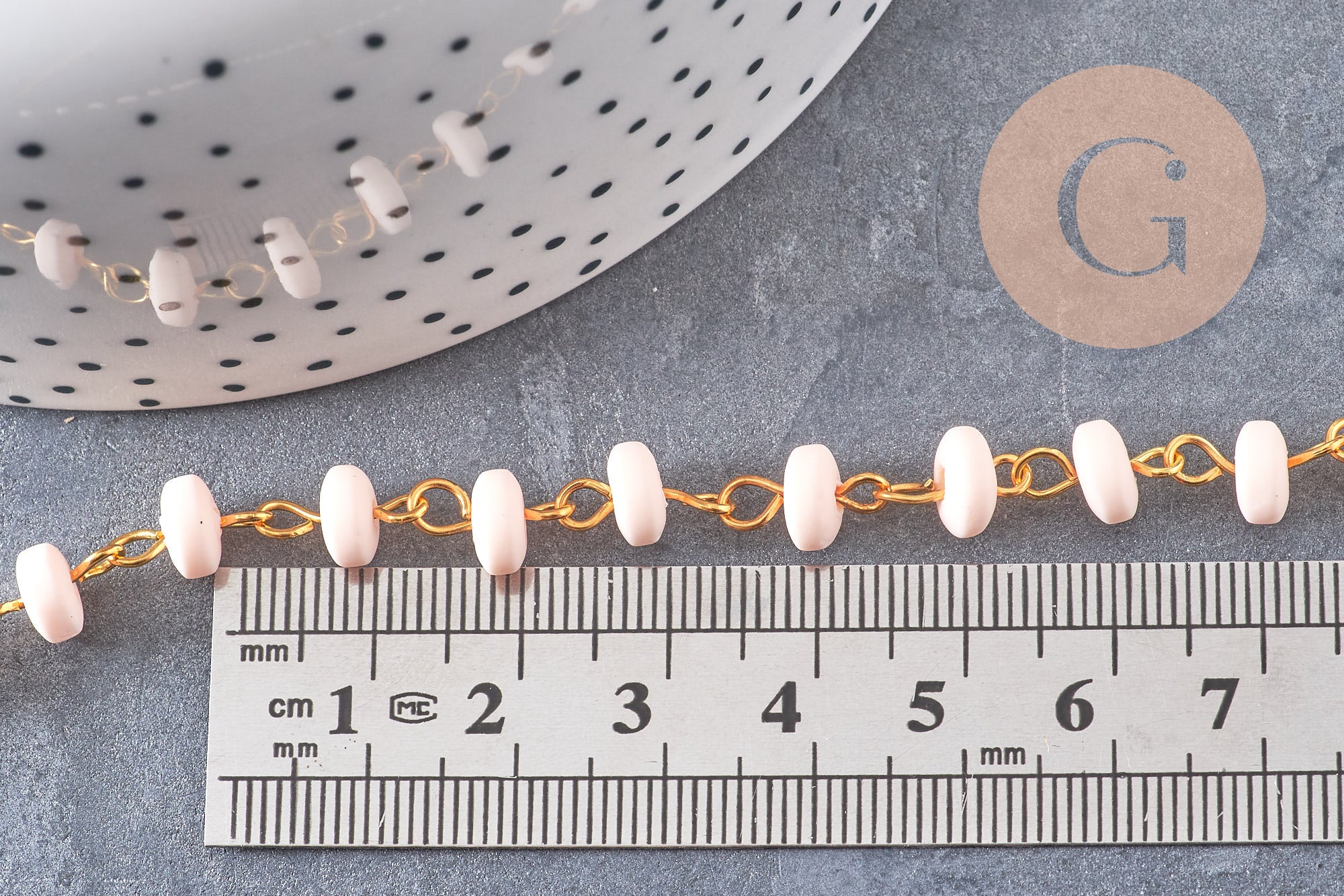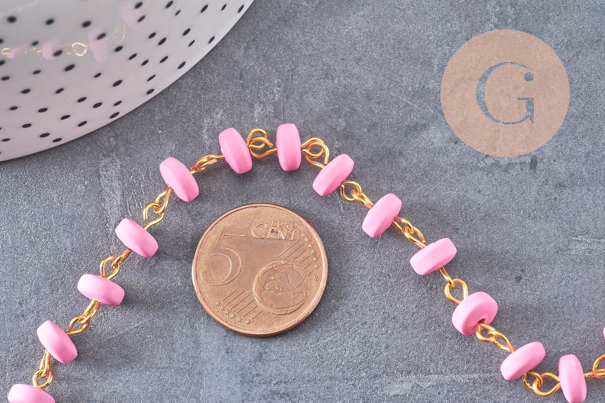 Adopte esta cadena de hierro dorada , vendida por metro. Éste está formado por cuentas en forma de disco en un color pastel mixto. ¡Ideal para agregarle un poco de dulzura a tu vida!