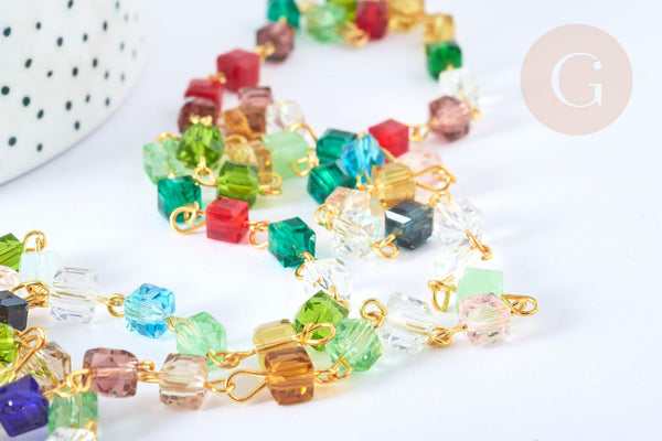 EP Chaines Cubo de cuentas de cristal de hierro dorado, x1 metro G7659