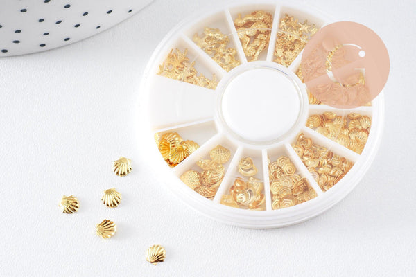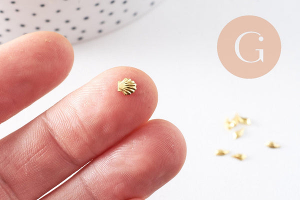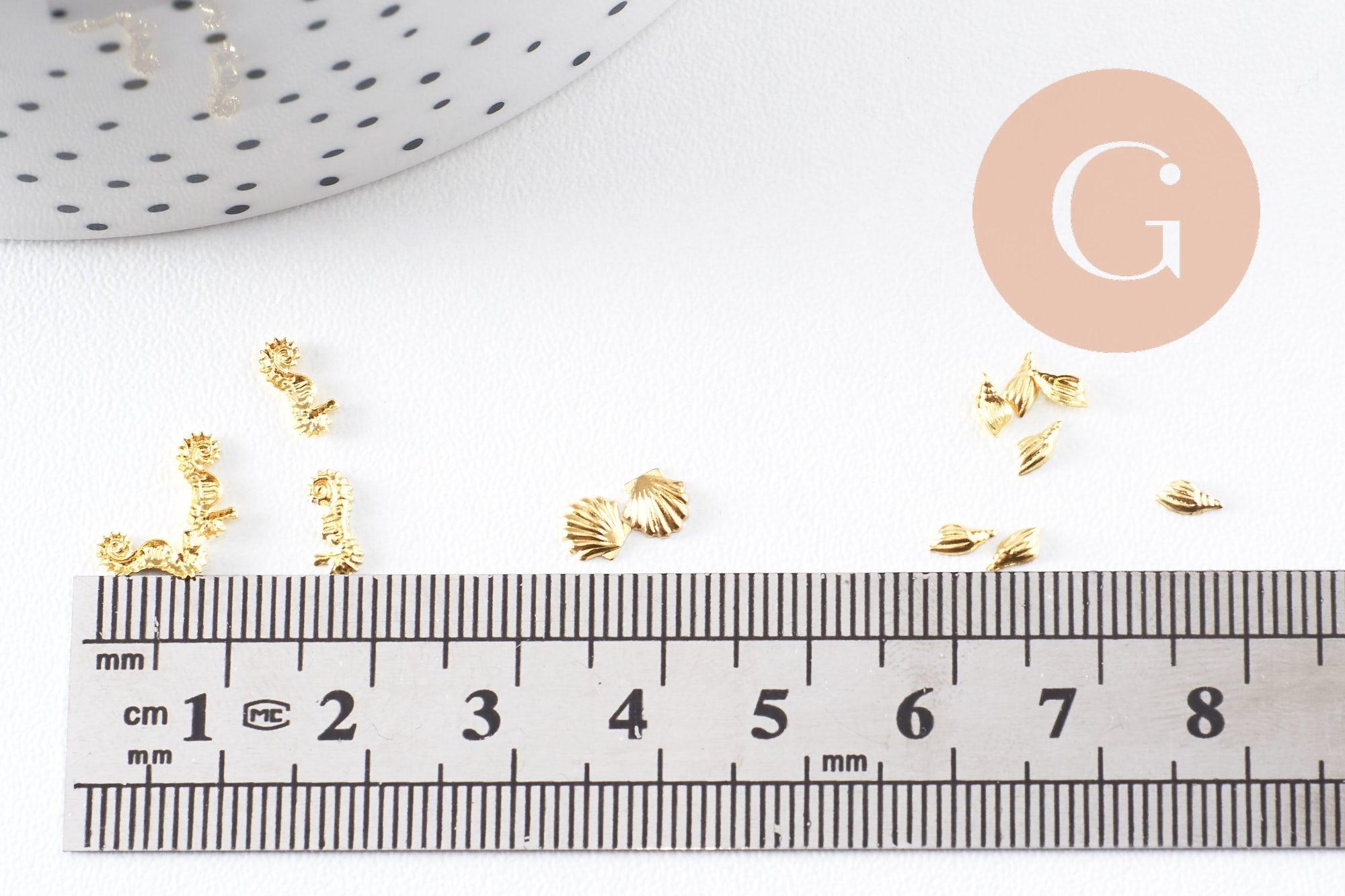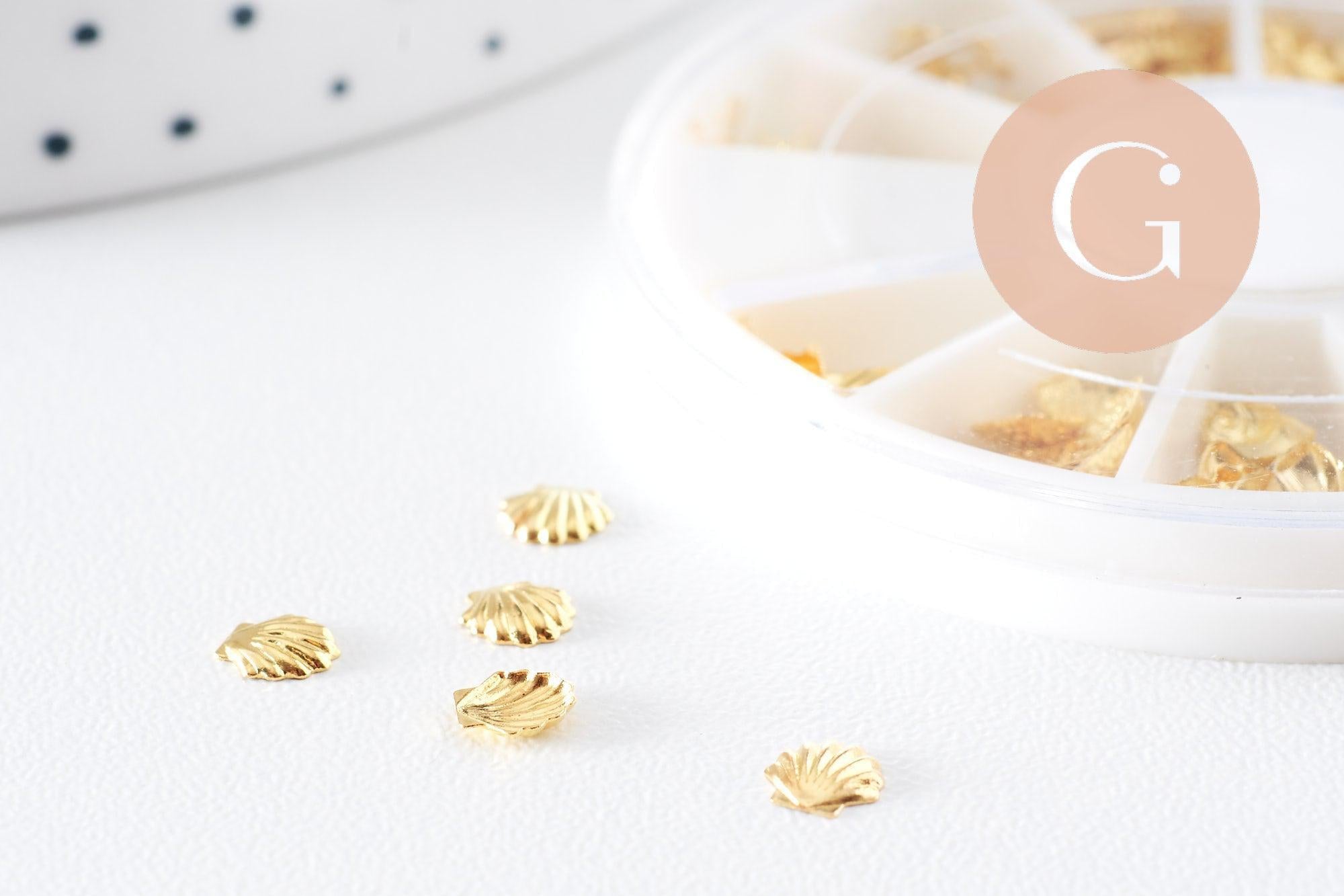 Charm à coller thème océan coquillage zamac doré 4mm, fournitures à coller pour décorer pierres et bijoux, x 1boite de 200 (G5298)