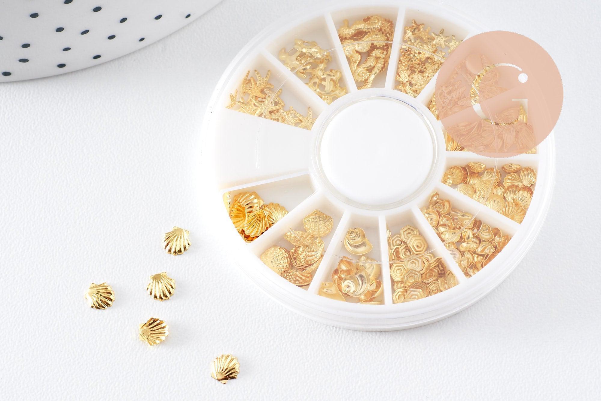 Dije para pegar en concha de zamac dorado con tema oceánico de 4 mm, suministros para pegar para decorar piedras y joyas, x 1 caja de 200 (G5298)