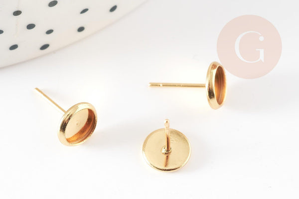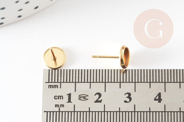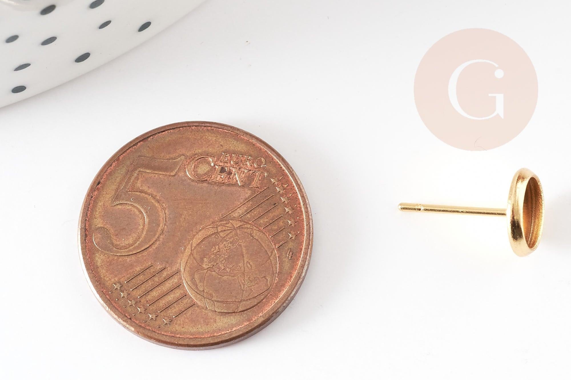 Clous-puces oreille support cabochon rond acier 304 inoxydable dore 18K, x10 (G9224)