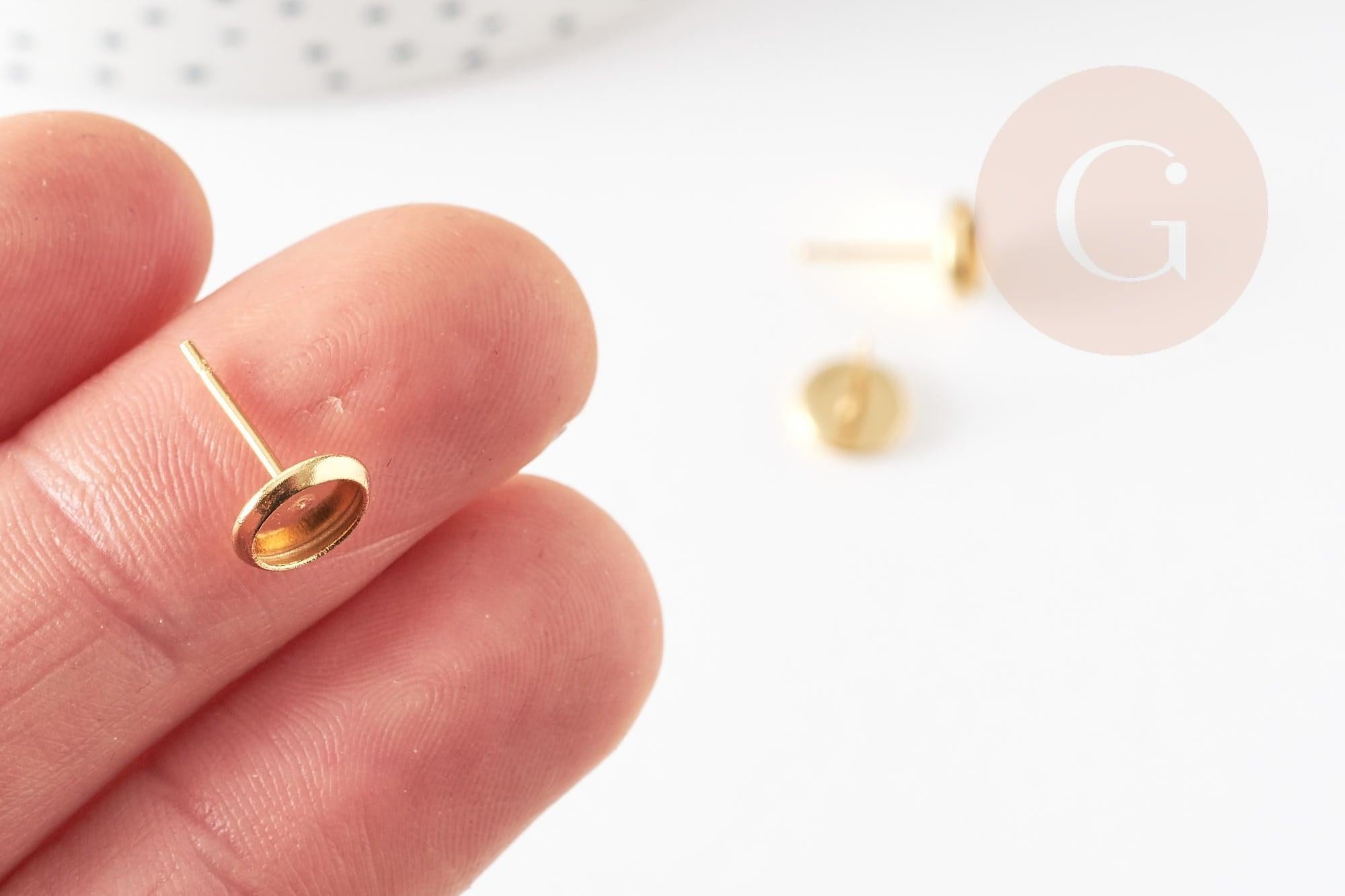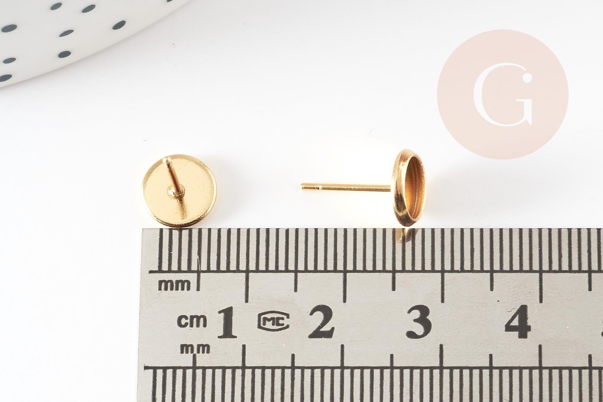 Crea pendientes personalizados con nuestros soportes para pendientes para cabujones de 8 mm en acero inoxidable bañado en oro 304.