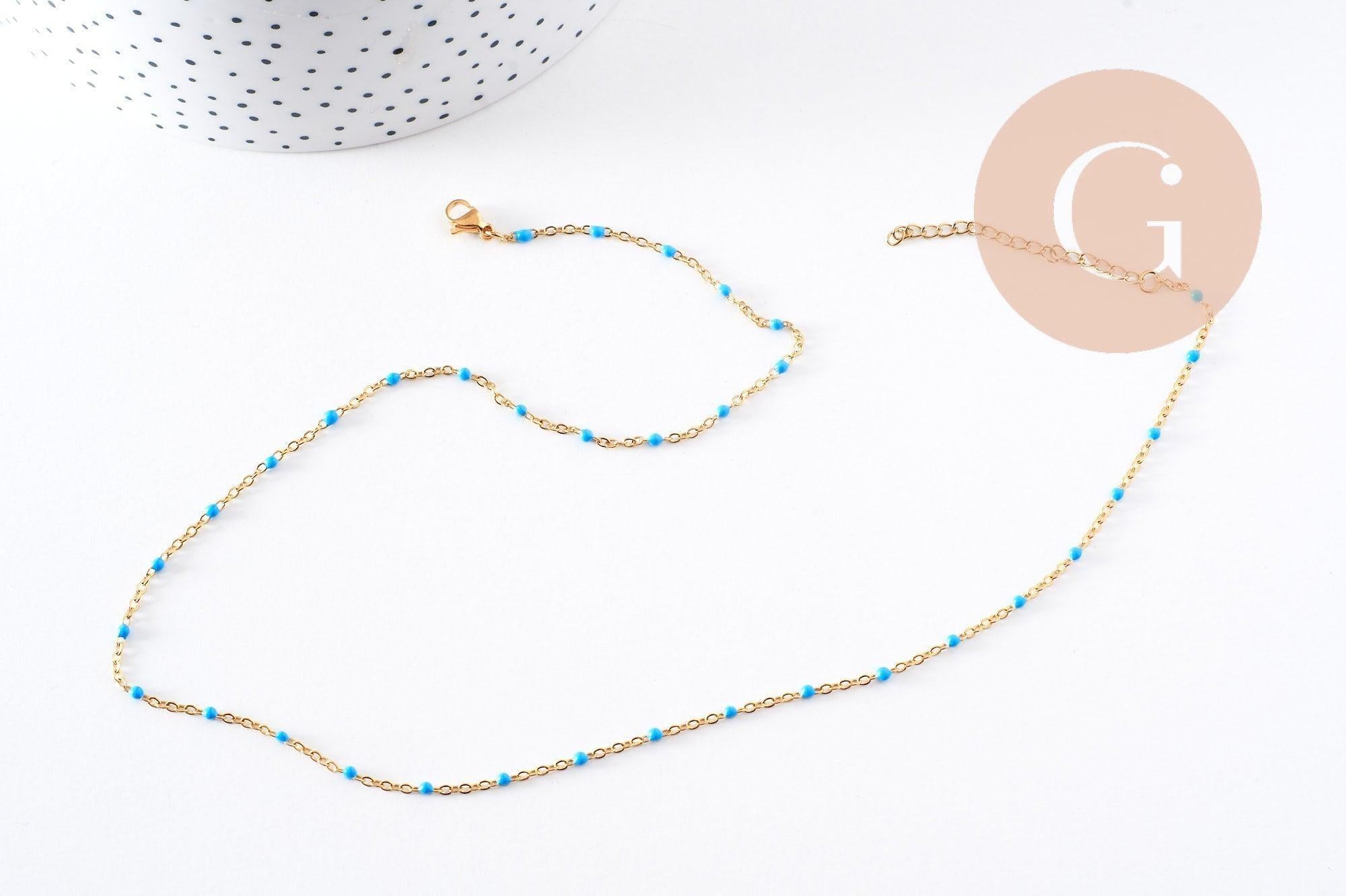 Collar de acero inoxidable 304 bañado en oro de 14k con resina turquesa de 50 cm, x1 (G10197)