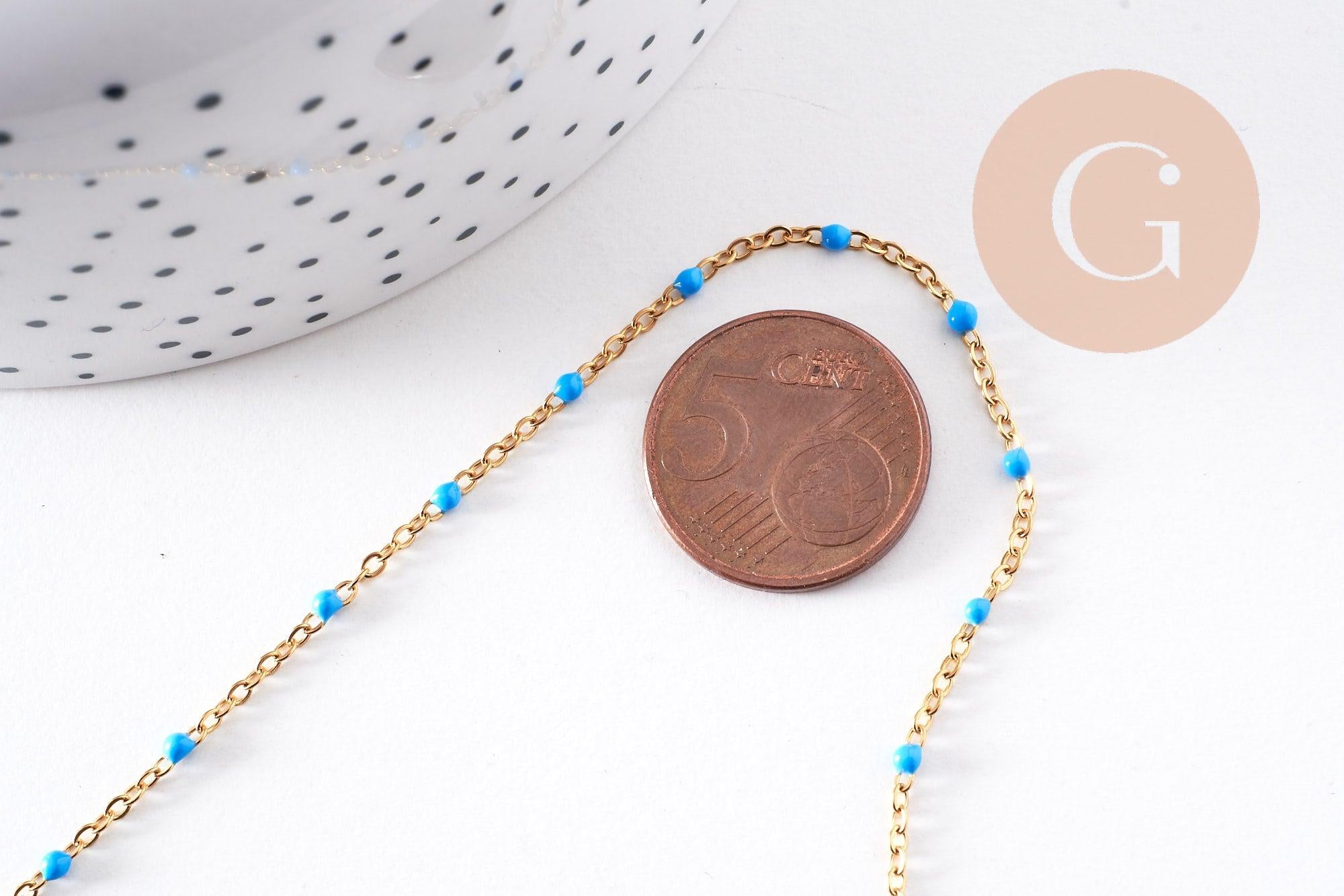 Añade un toque de frescura a tus creaciones DIY con este collar de acero inoxidable 304 bañado en oro de 14 quilates , realzado con fina resina turquesa . Su color luminoso recuerda los tonos de las lagunas y combina perfectamente con el oro para una pieza de joyería veraniega y elegante.