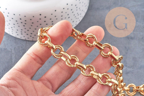 Collar XXL de cadena de acero inoxidable 304, acabado texturizado IP chapado en oro, 45 cm, 1 unidad.