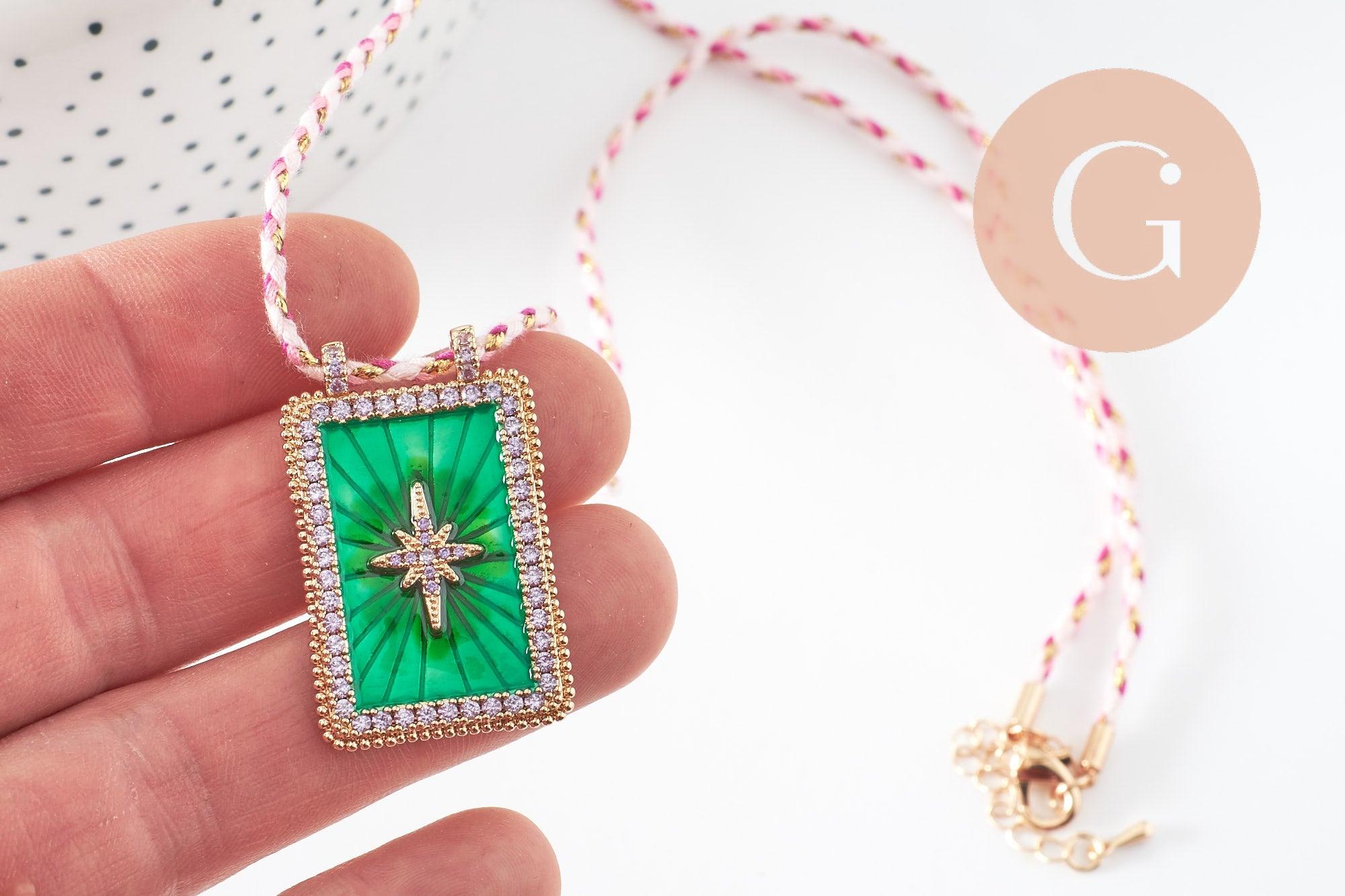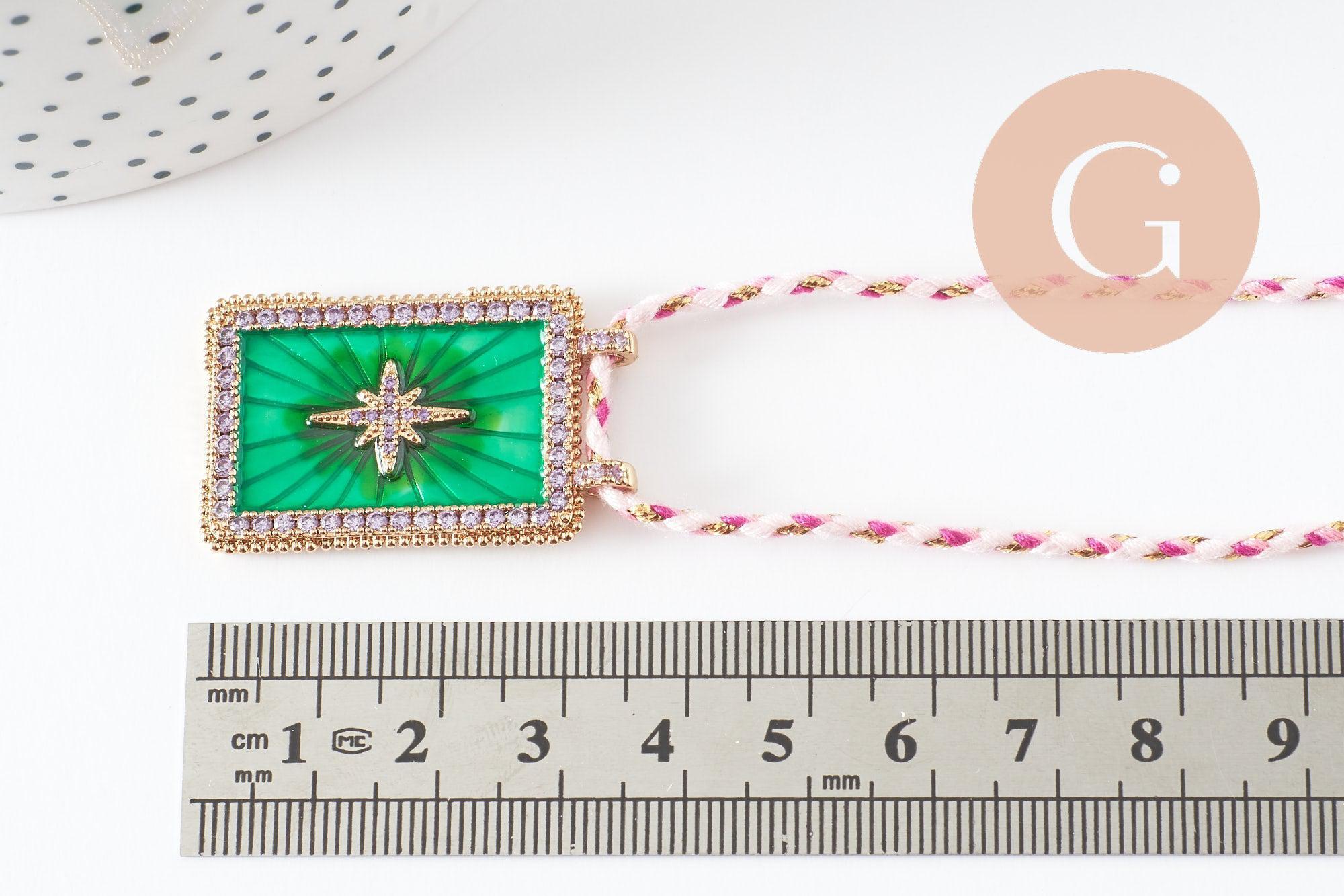 Collar medallón de esmalte estrella verde con circonitas en zamac dorado, collar cordón trenzado 45cm x1 (G9564)