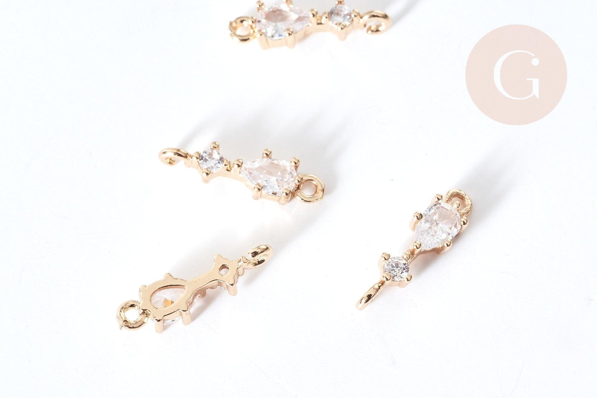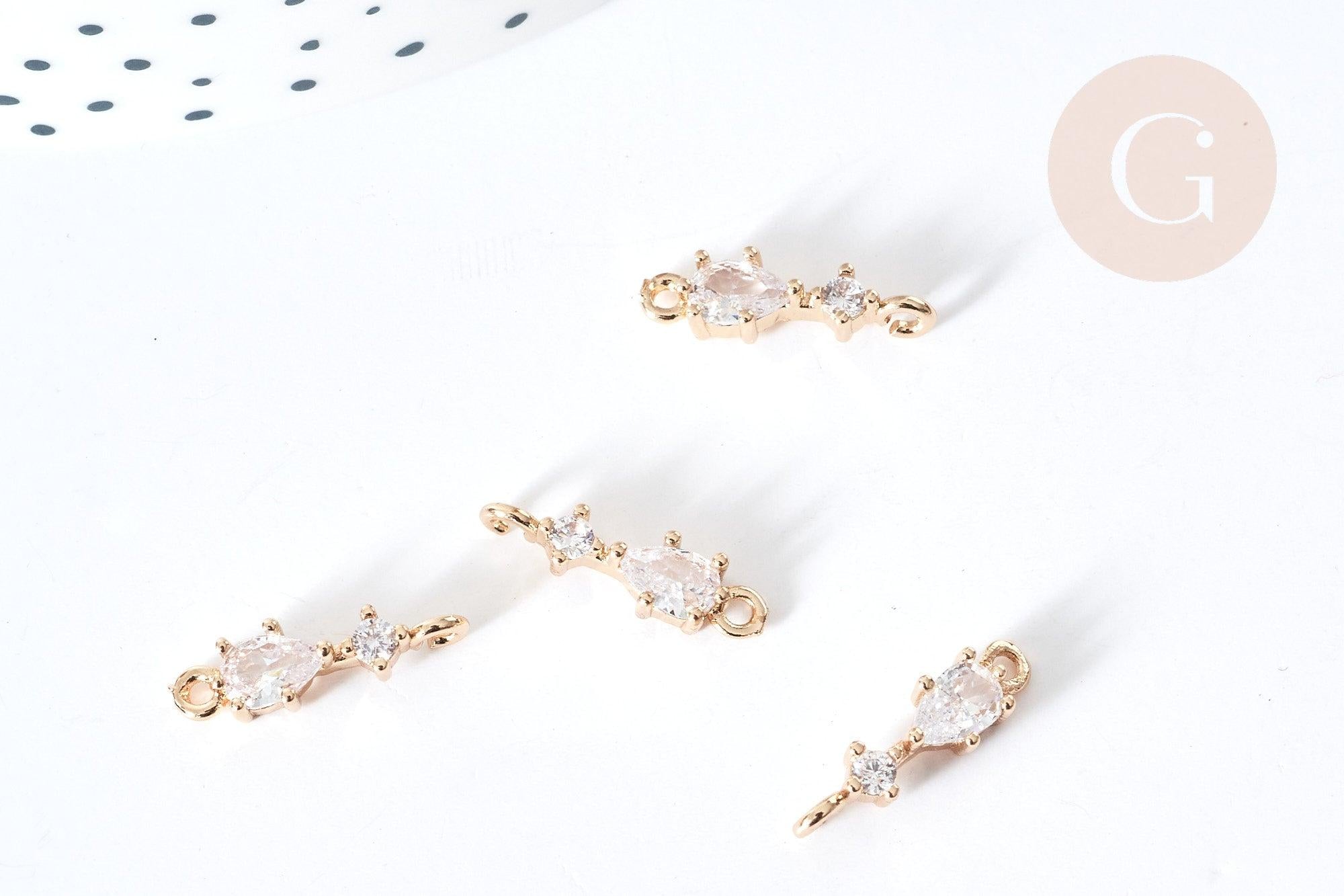 Conector gota y redondo con circonitas de latón bañadas en oro de 17 mm, colgante de cristal para creación de joyas, x1 (G8075)