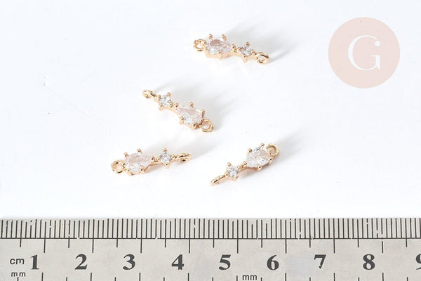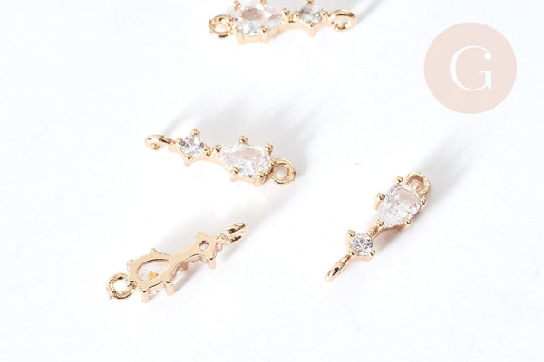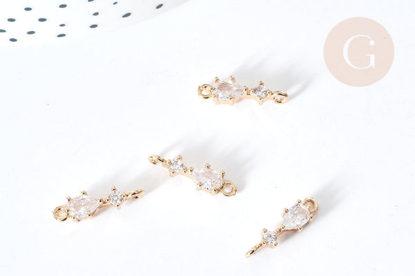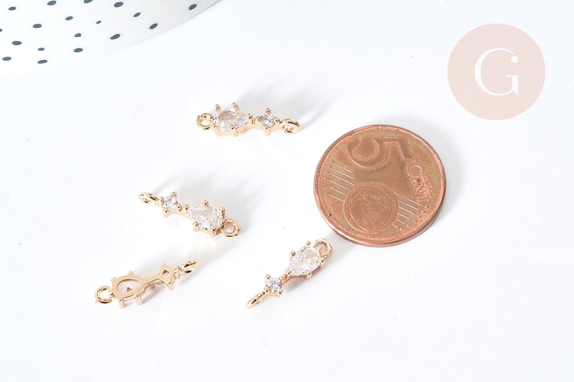 Connecteur goutte et rond laiton doré zircons 17mm, pendentif cristal création bijoux, x1 (G8075)