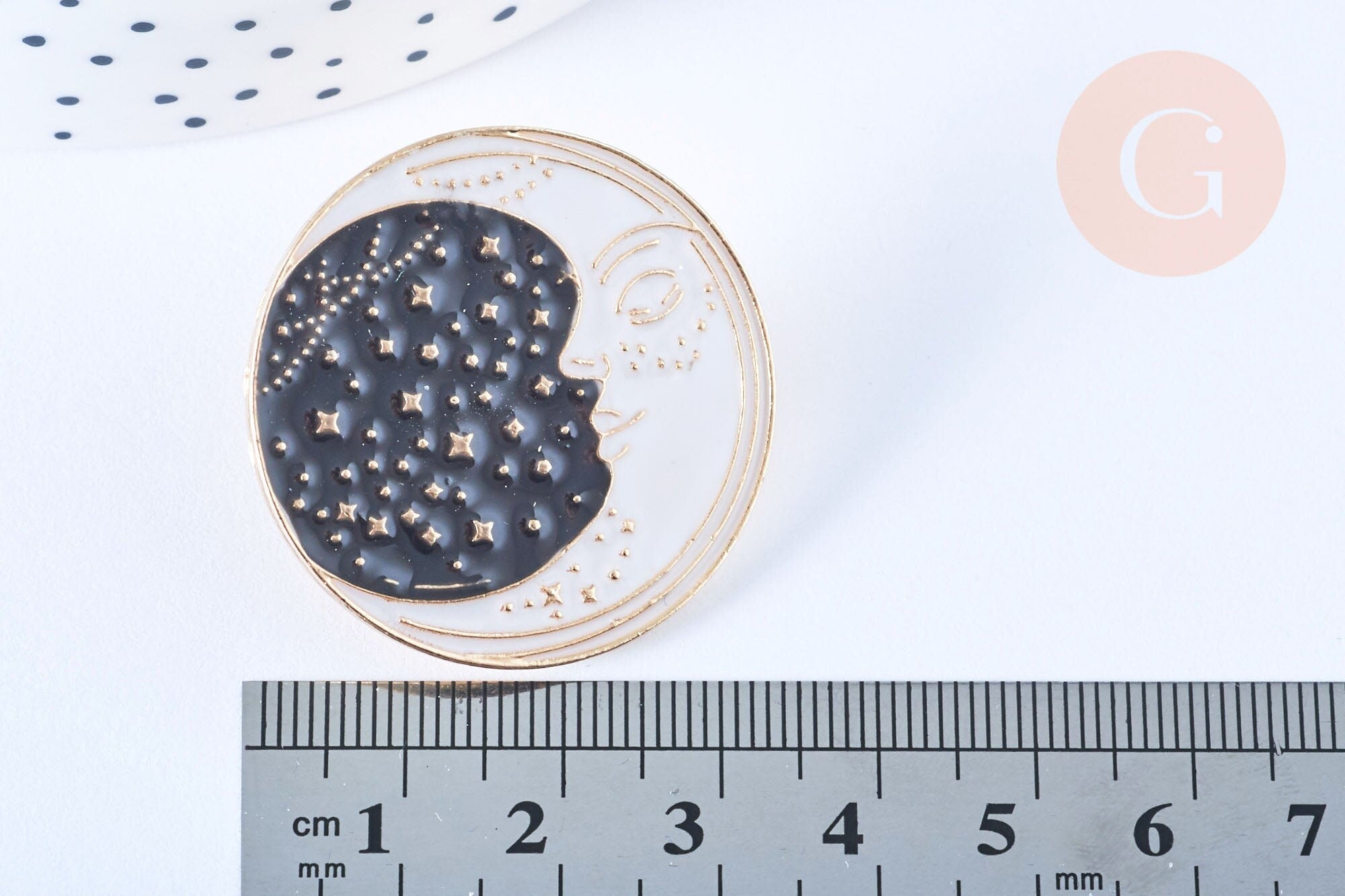 Broche EP con forma de media luna mística, esmalte negro y dorado, 35 mm, x1 (G6628)