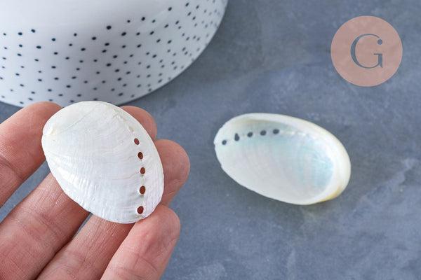 EP concha natural blanca nacarada HALIOTIS ASININA 50-70mm, joyería de concha natural, x1 (G4163)