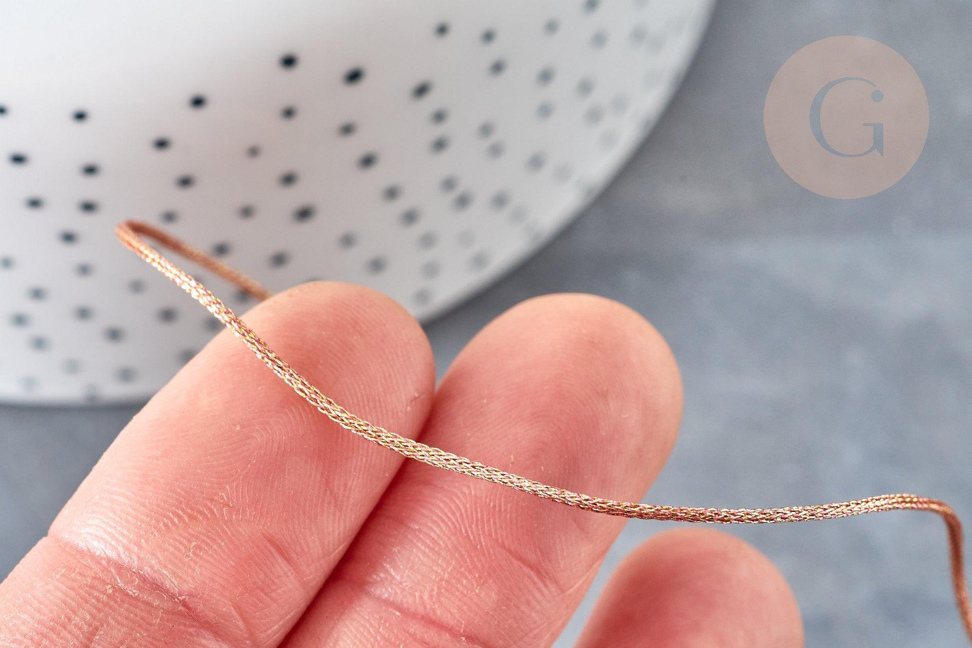 Este cordón de cobre está trenzado con alambre metálico envuelto en poliéster, ideal para crear joyas, accesorios, bolsos, ropa, álbumes de recortes y otras actividades creativas.