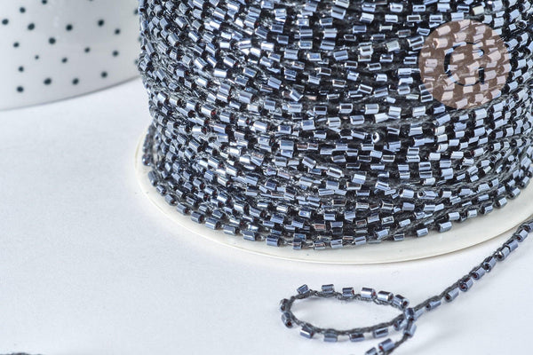 te ofrecemos este cordón de perlas negras iridiscentes para realizar tus bisutería, complementos, bolsos y ropa o para scrapbooking y otras aficiones creativas,