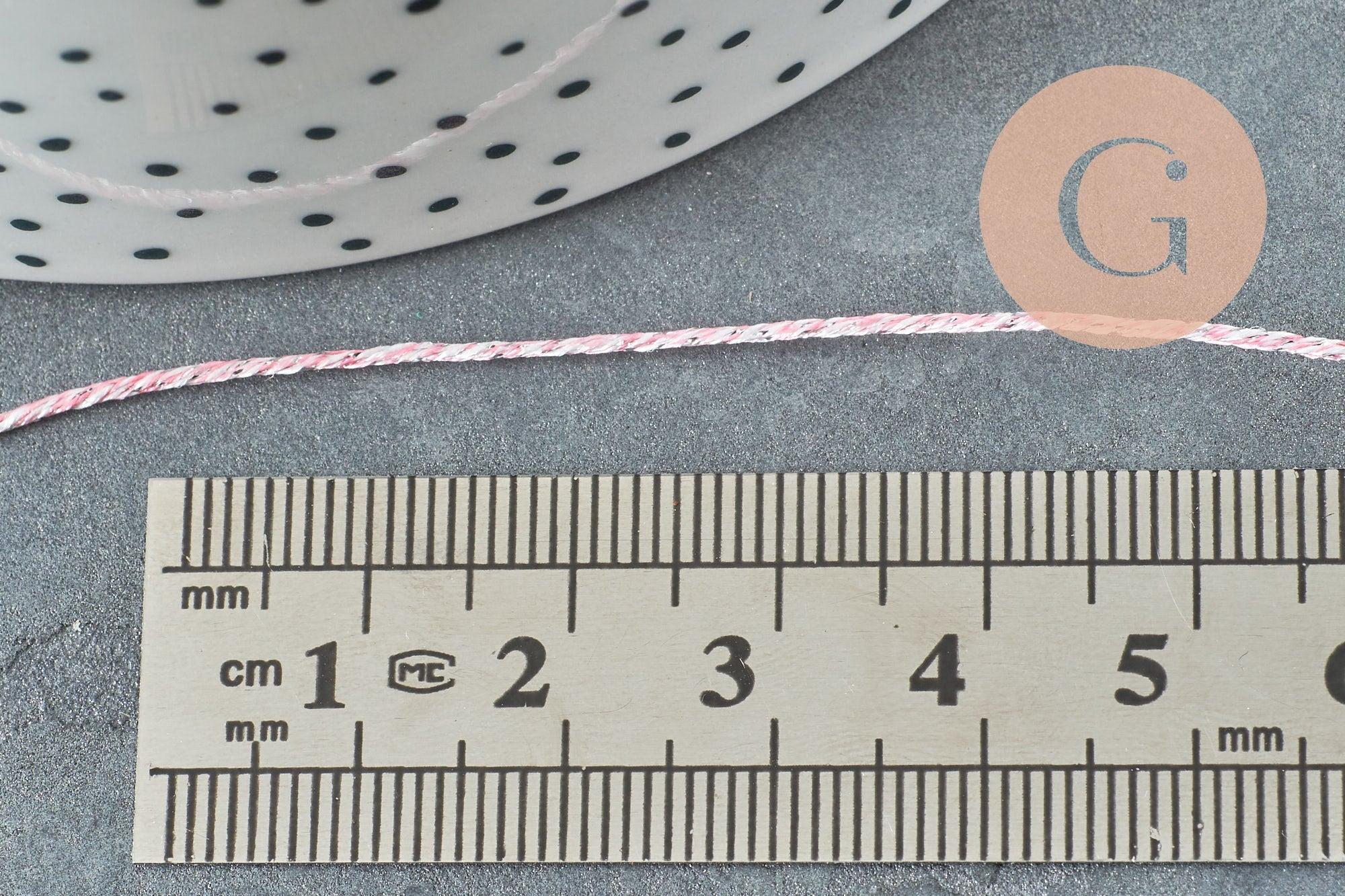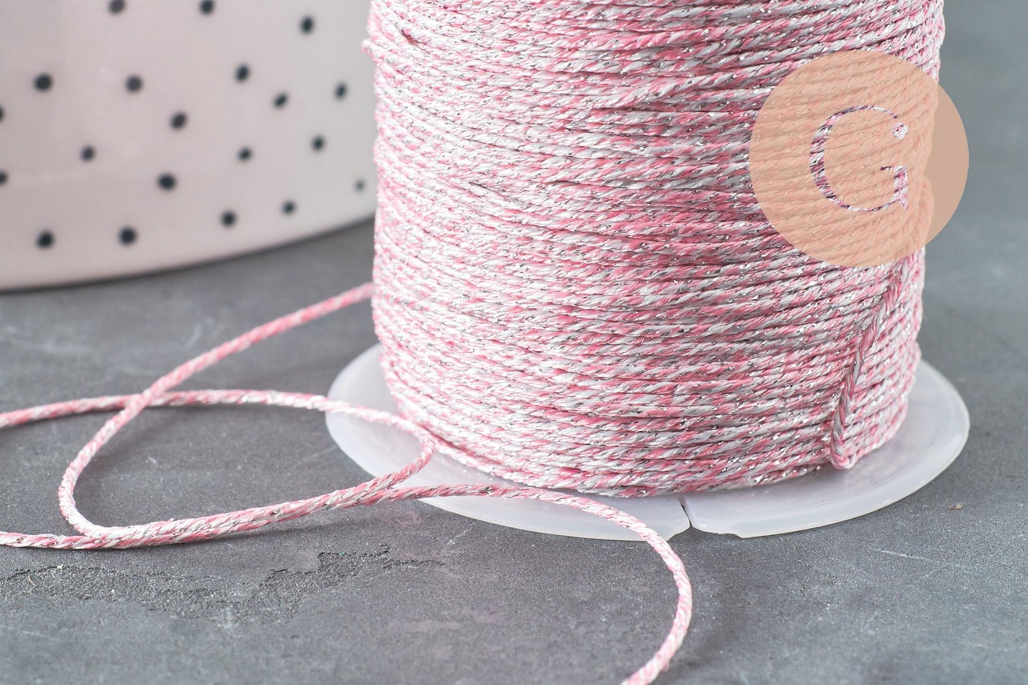 Un magnífico hilo de nailon rosa, blanco y plateado, para utilizar en la confección de joyas, álbumes de recortes, creación de accesorios y bordados.