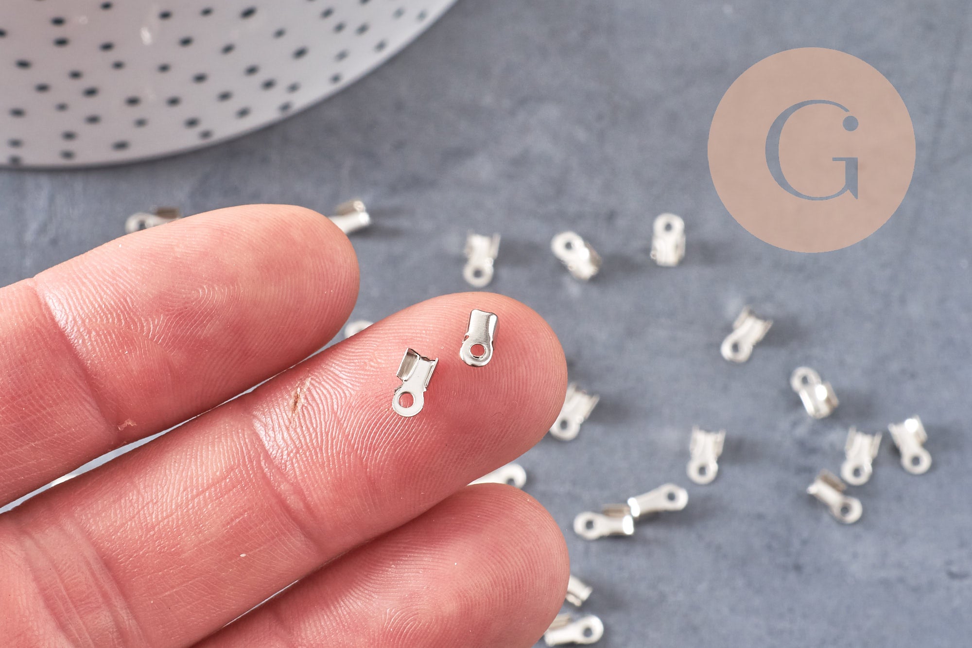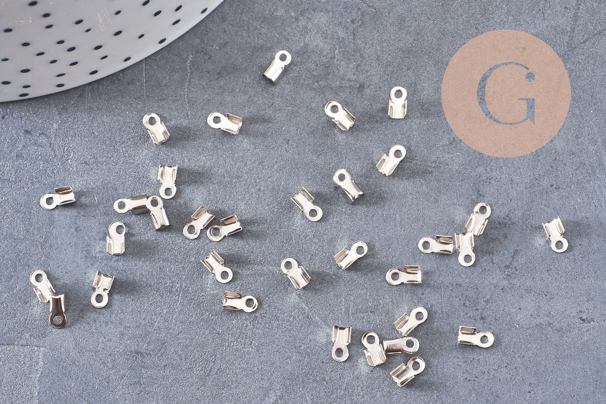 Para sus pulseras, collares y otras joyas que requieran el uso de cadenas, cordones o cintas, aquí tiene un juego de 100 terminales de metal plateado.