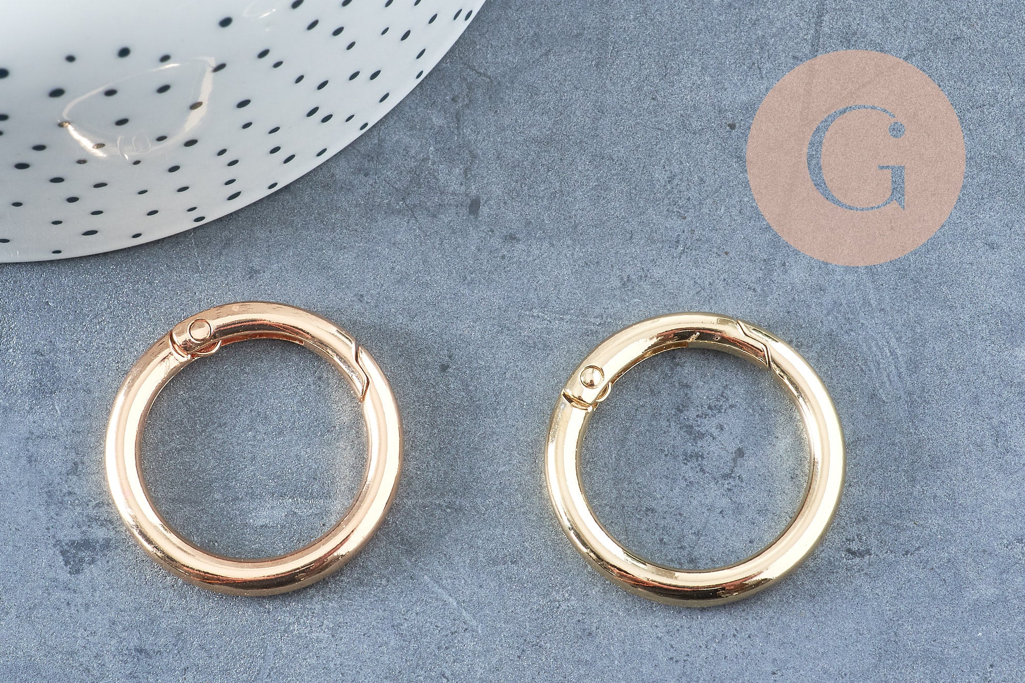 Este gran cierre de mosquetón de zamac bañado en oro es mucho más que un simple accesorio: es un elemento resistente que aportará estilo y originalidad a tus creaciones. Muy actual, puede usarse tanto como pieza decorativa como sistema de cierre. ¡Ideal para joyas DIY modernas y con un toque de personalidad!