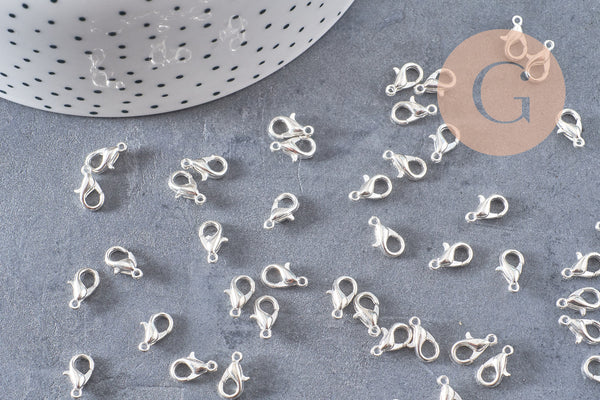 Cierre de langosta de zamac plateado de 10 mm, x20 (G10575)