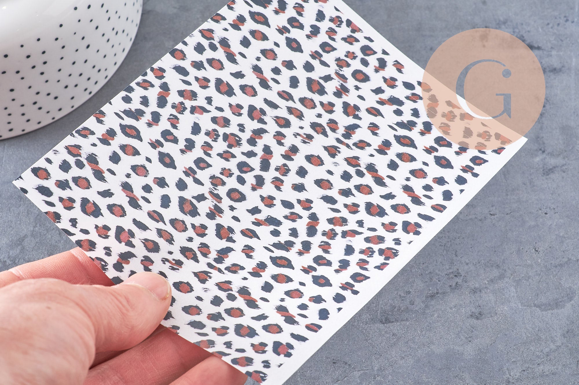 Lámina de transferencia de polímero – Fondo blanco de leopardo, 14 x 10 cm, x1 (G10788)