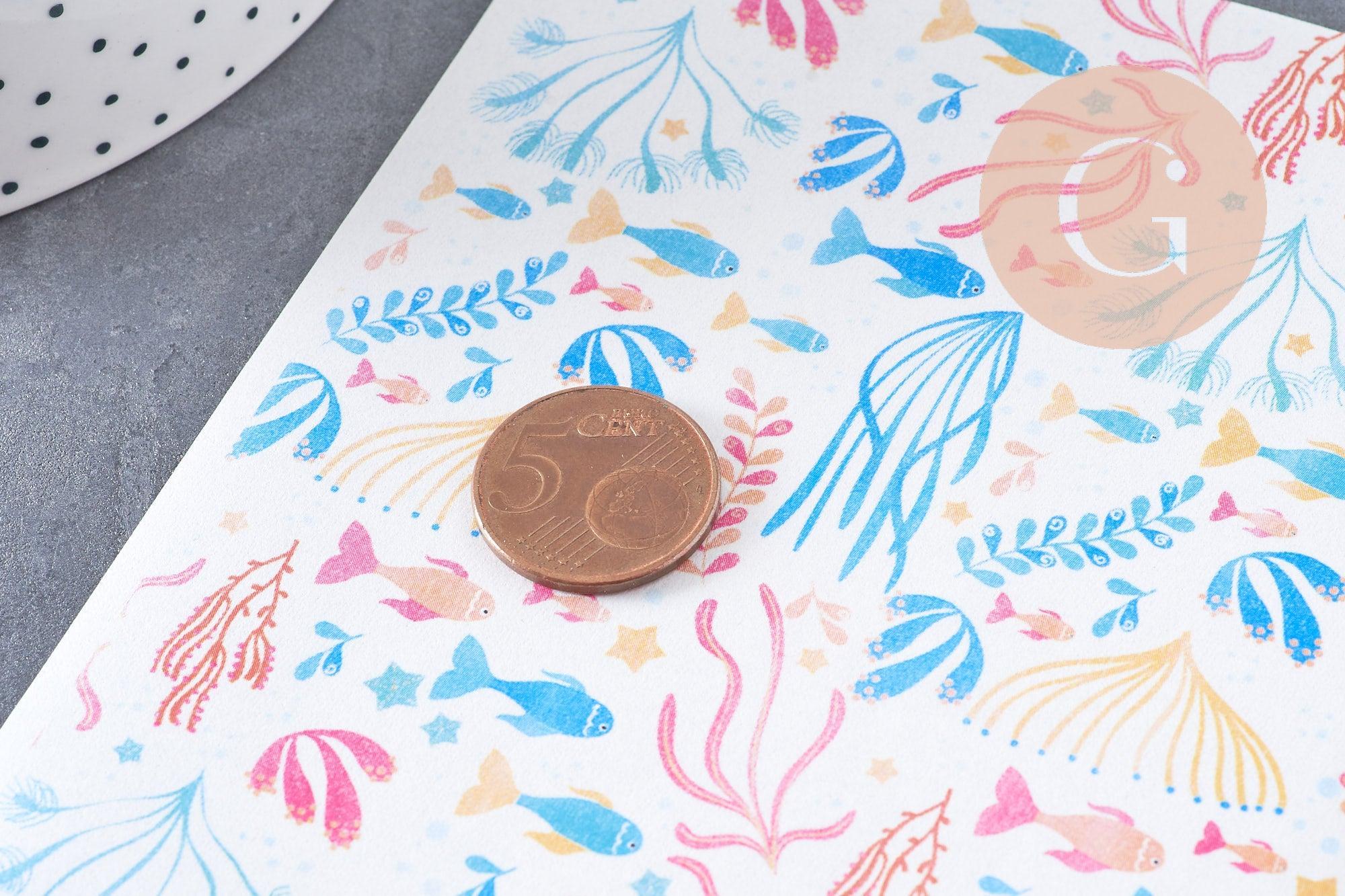 Dale un toque exótico y colorido a tus creaciones con esta lámina transferible de arcilla polimérica . Sus diseños de corales multicolores (peces, corales y algas) evocan el fondo marino y te invitan a crear joyas de verano brillantes y originales.
