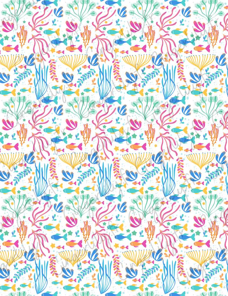 • Patrón: peces multicolores, corales y algas (océano tropical)
