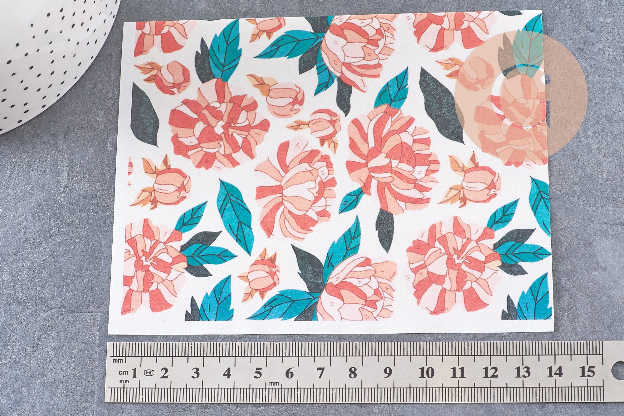 Dale un toque floral vibrante a tus creaciones con esta lámina de transferencia de arcilla polimérica . Su estilizado diseño de peonías en vibrantes tonos rosa, rojo y verde sobre un fondo rosa añade intensidad y elegancia a tus joyas hechas a mano.