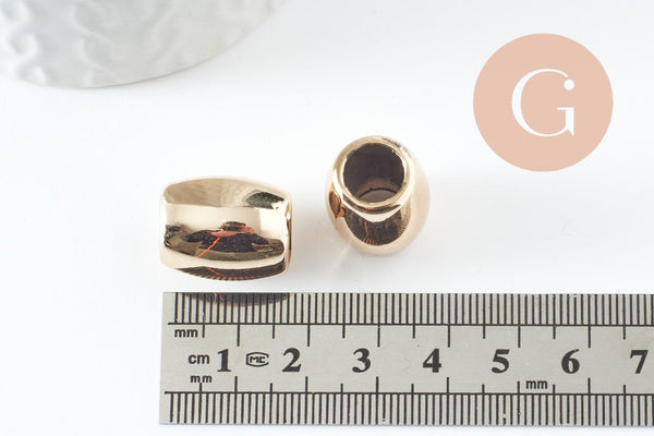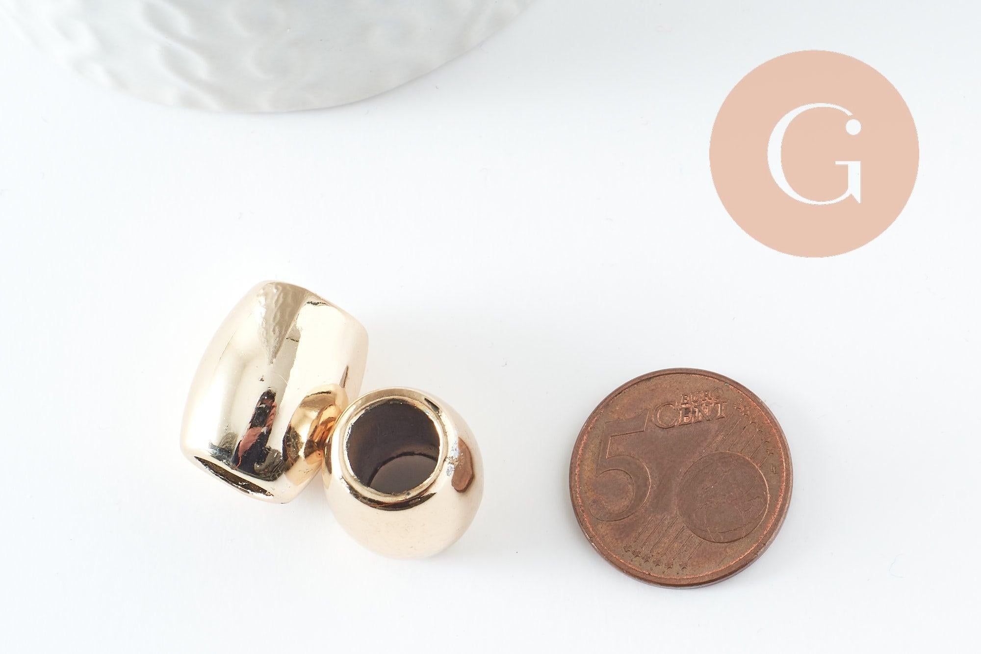 Descubre estas magníficas cuentas de zamac ovaladas doradas con un acabado liso y un gran agujero, ideales para dar vida a tus creaciones de joyería DIY . Con estos abalorios podrás crear bisutería únicas y originales que no pasarán desapercibidas.
