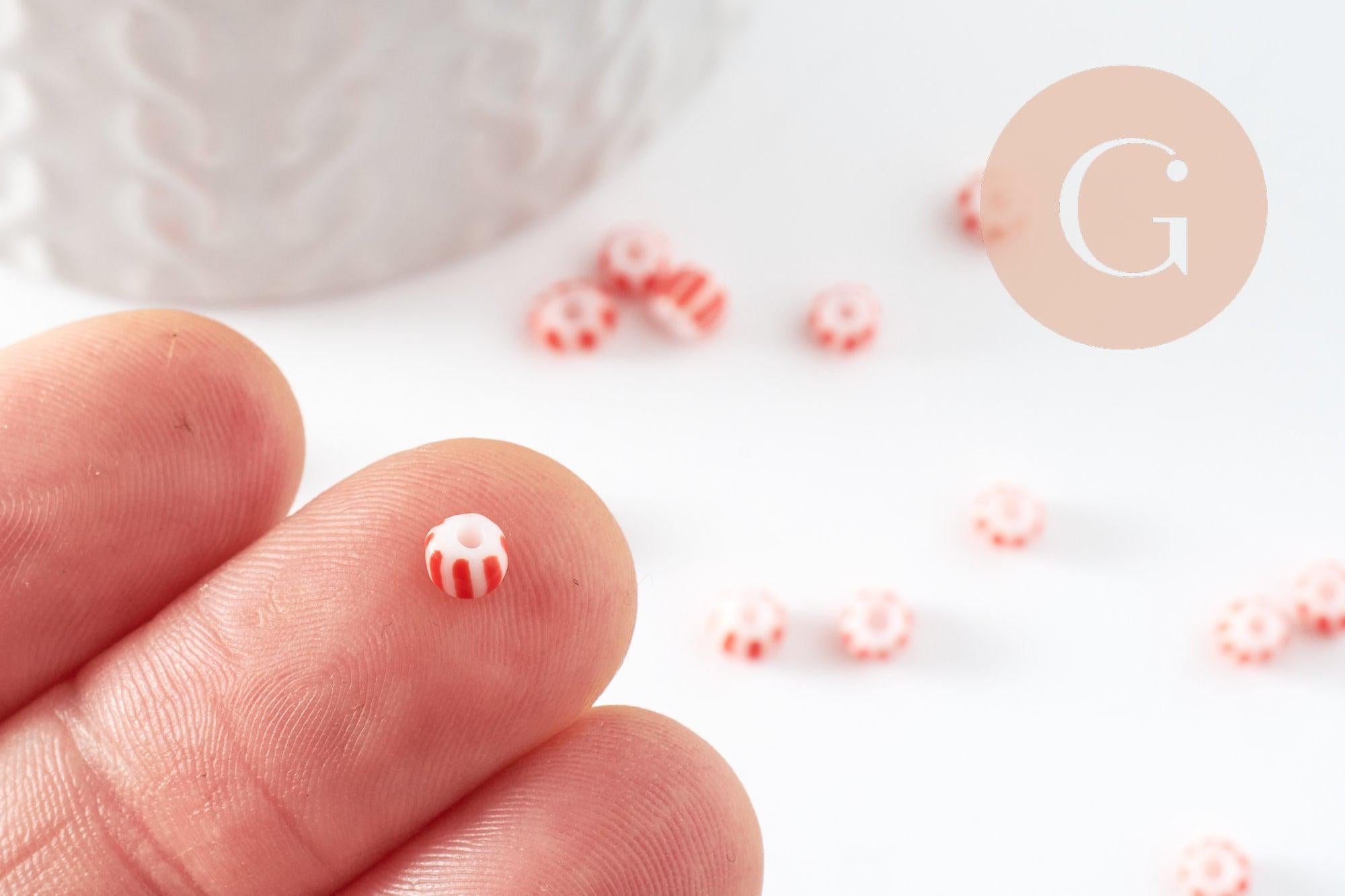 Cuentas grandes de semillas con rayas rojas y blancas de 3-4,5 mm, x 10 g (G9419)