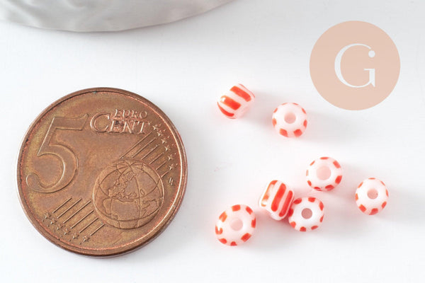 Grosse Perle rocaille rayé rouge blanc 3-4.5mm, x 10gr (G9419)