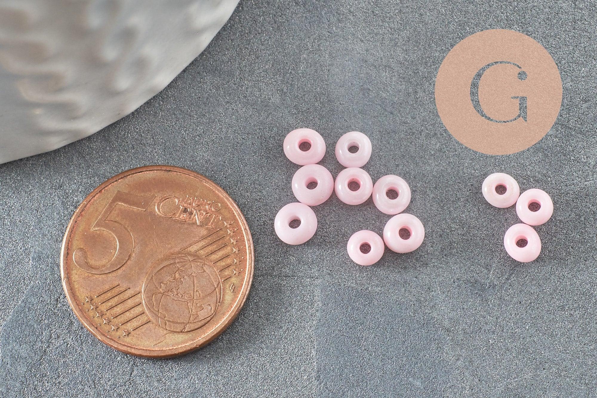 Cuentas grandes de color rosa, suministros de joyería, cuentas de color blanco, blanco iridiscente, lote de 10 g, fabricación de joyas, diámetro 4 mm