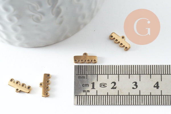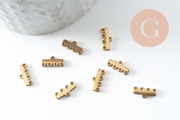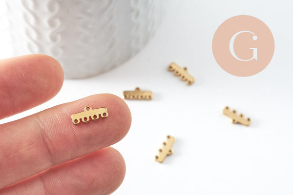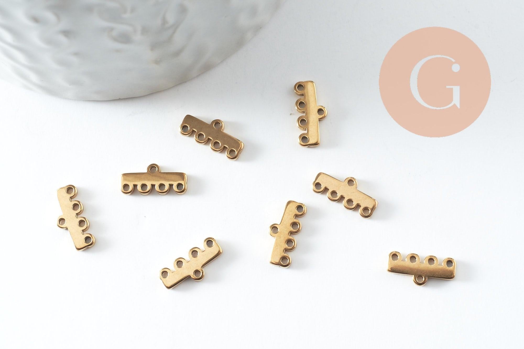 Crea bisutería DIY única con este colgante espaciador de acero chapado en oro , equipado con 5 anillos cerrados para suspender una variedad de componentes.