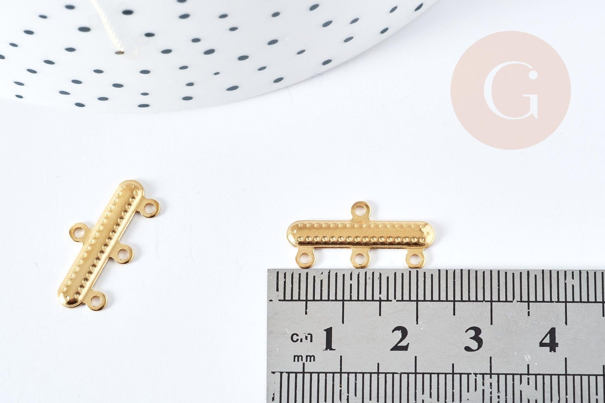 Aporta un toque elegante y sofisticado a tus creaciones de joyería con este espaciador de pulsera de 3 hileras en acero inoxidable chapado en oro 304.