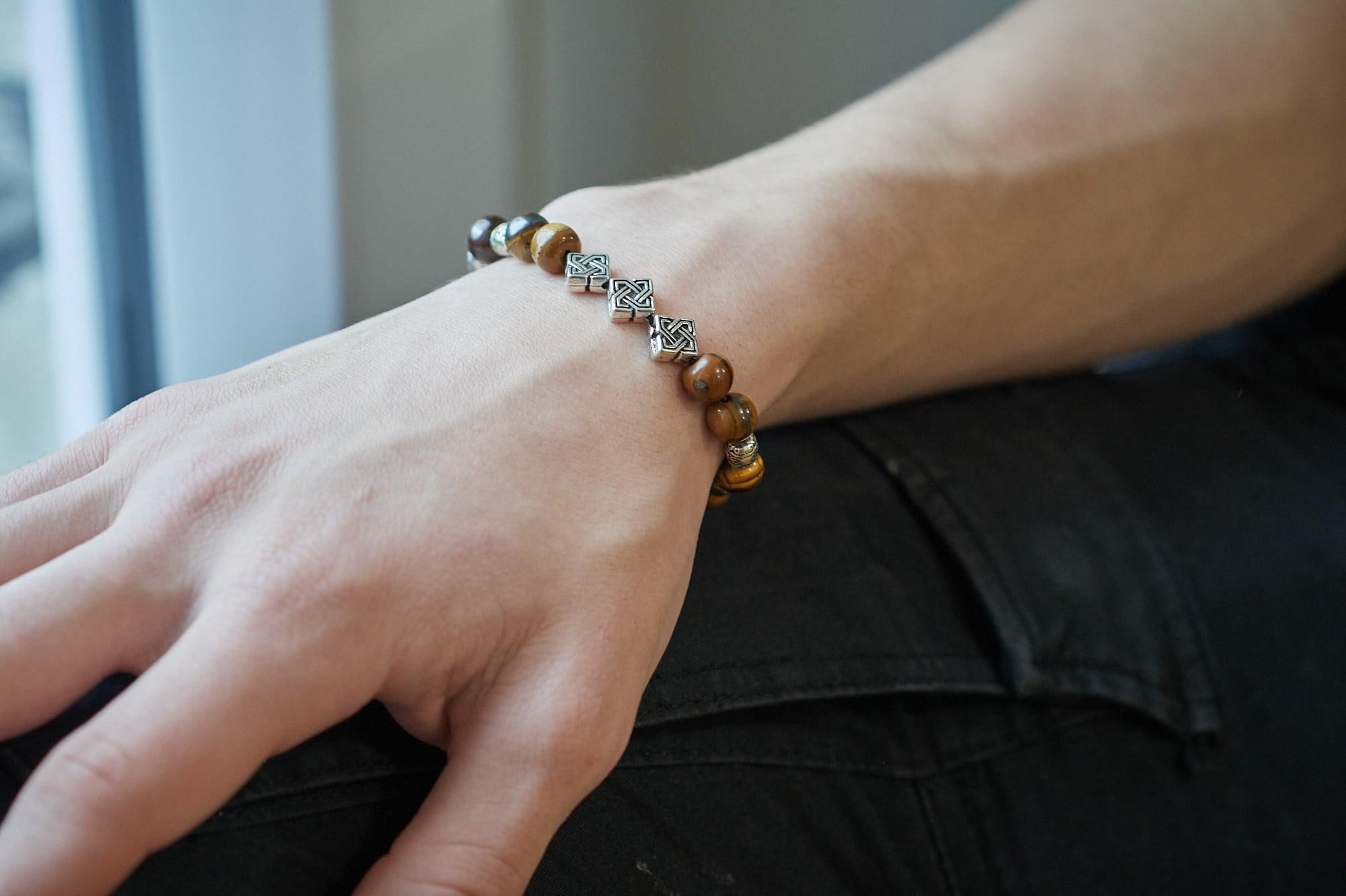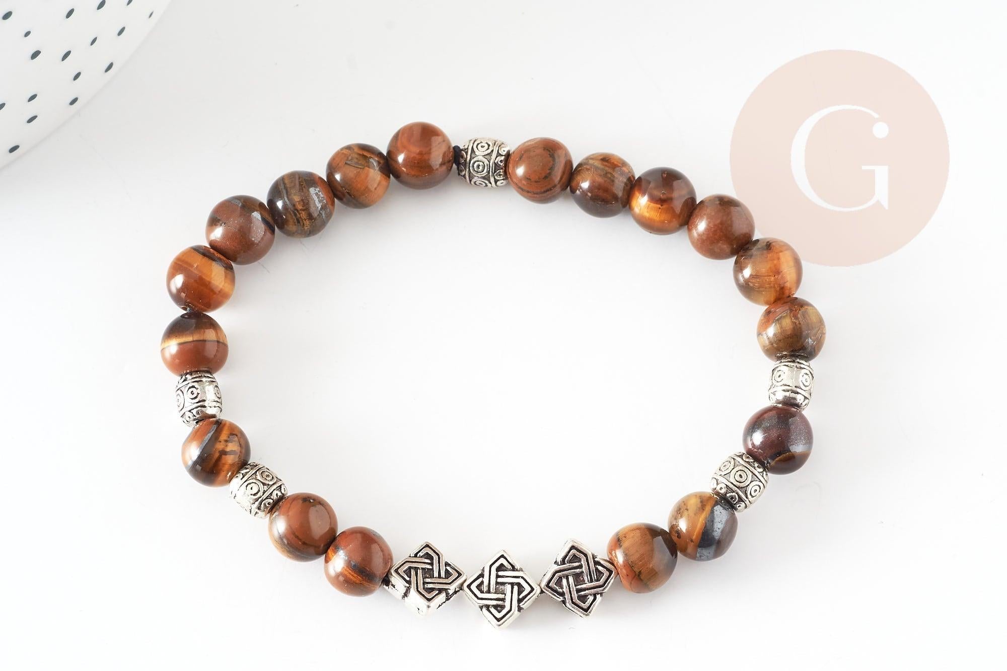 Kit Pulsera Hombre Ojo de Tigre Natural Plata Zamac LEILO, estuche 1 pulsera (G9176)