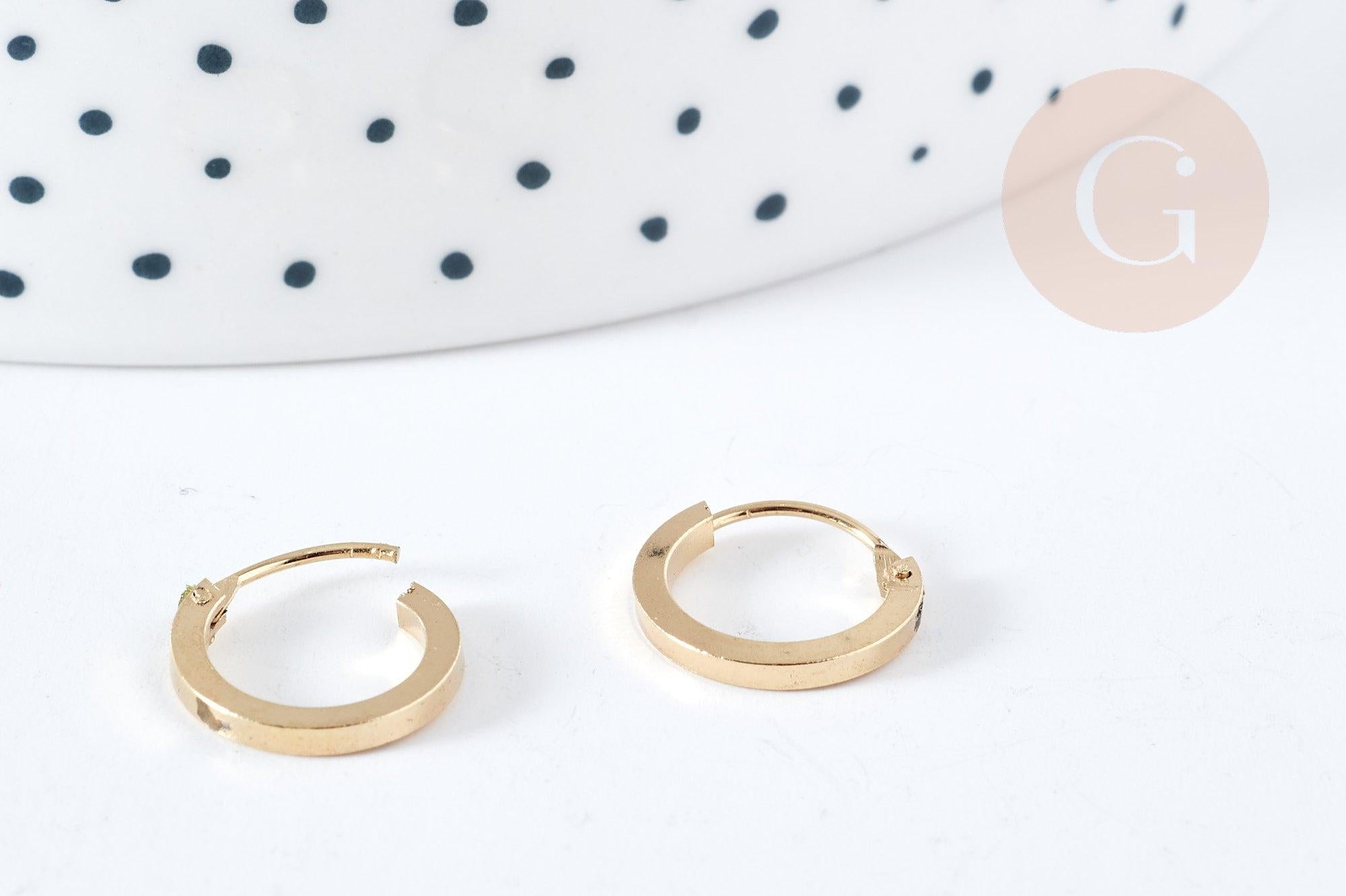 Mini aros de latón en oro de 18 quilates de 12 mm, un par de aretes de oro para orejas perforadas, el par G8289